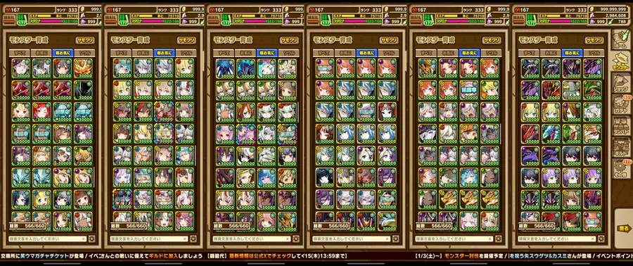 167:等級:303(可能會增加)、石頭:1774(可能會增加),新年幽蘭*2+毛茸茸季白天娘+聖糖之盾+火死二神+美食惡戲+庫克里爾公主+木劍神機*2+火怪刃*3+木怪刃+聖誕光天魔+二代科塞特斯*2+幼兒水暗封龍+鋼吼執行者*2+天道獅皇+火天星(已覺醒)+花嫁水真姬+鋼吼飛行士*2(1已覺醒)+鋼吼白盾+火砲裝姬+其他限定(實收2000)