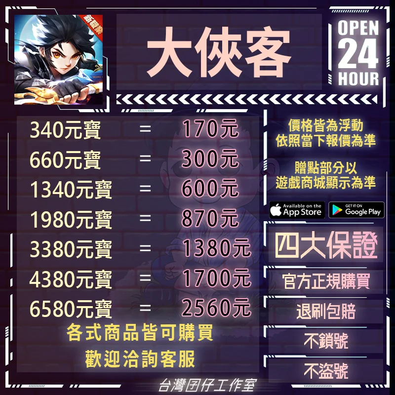 6.台灣囝仔台陸手遊代儲,純粹提供代儲服務並收取服務費,無賺取中間差價