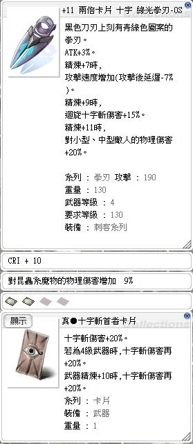 +11綠光拳刃[真●十字斬首者卡片*2/CRI+10/對昆蟲系物理攻擊+9%]