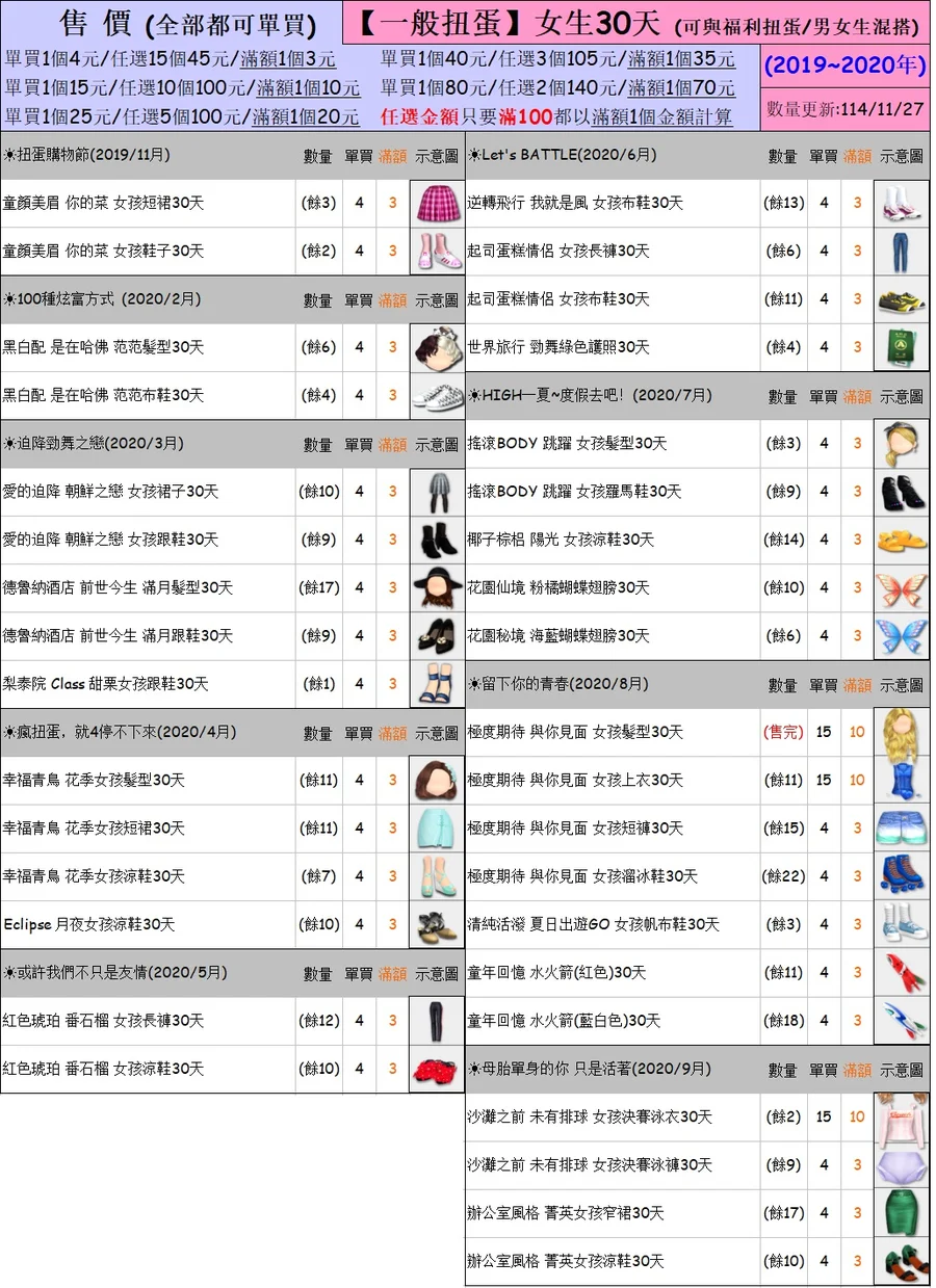 YB的女生一般/福利扭蛋30天數任選3元起~