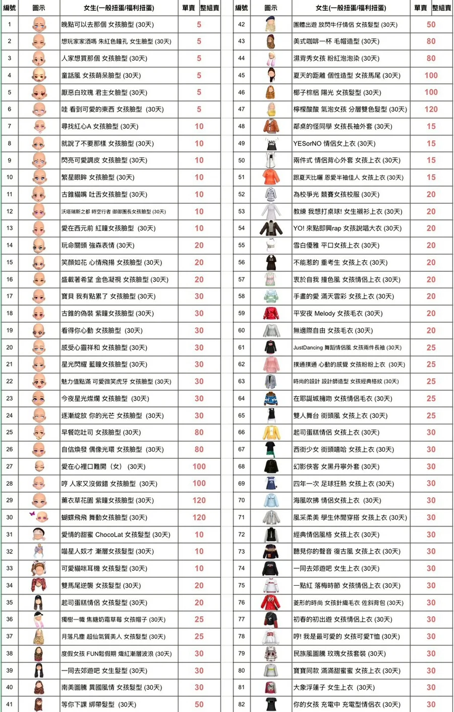🔸女生 (30天)