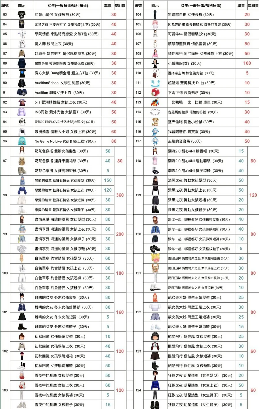 愛你99 時尚LOVE 情侶造型(衣服-女) (30天)