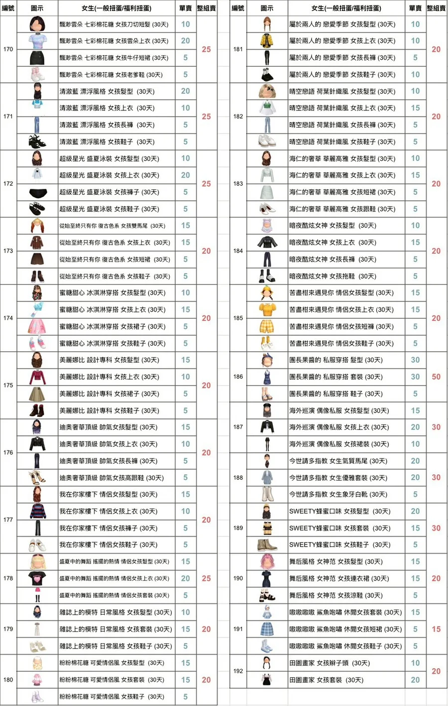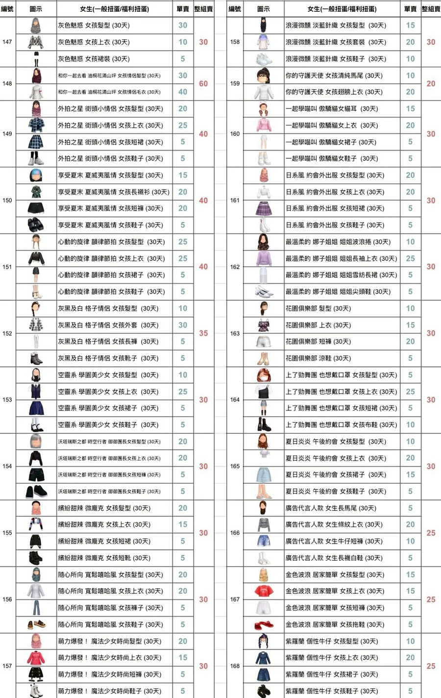 網紅推薦穿搭 女孩 (30天)