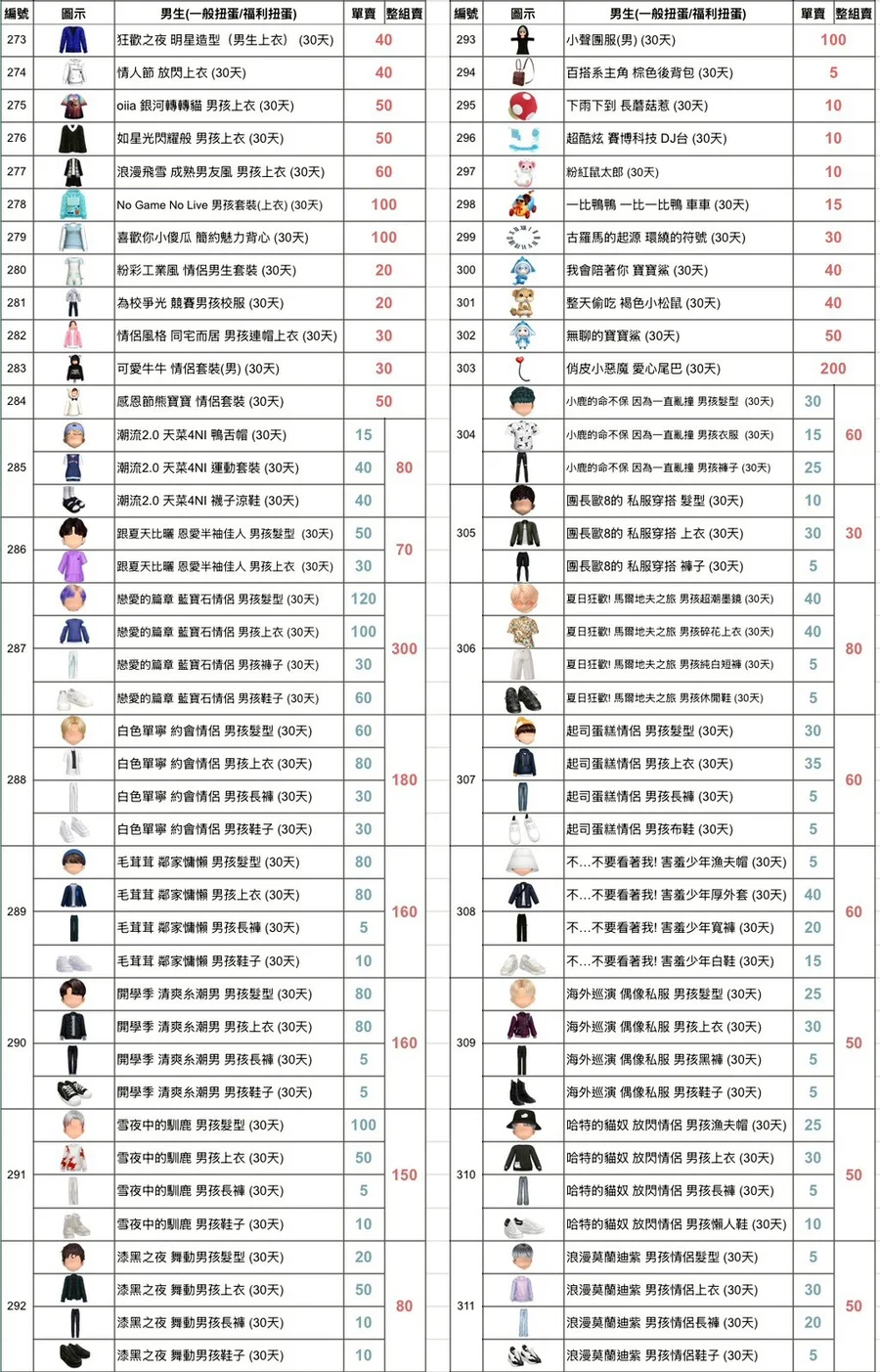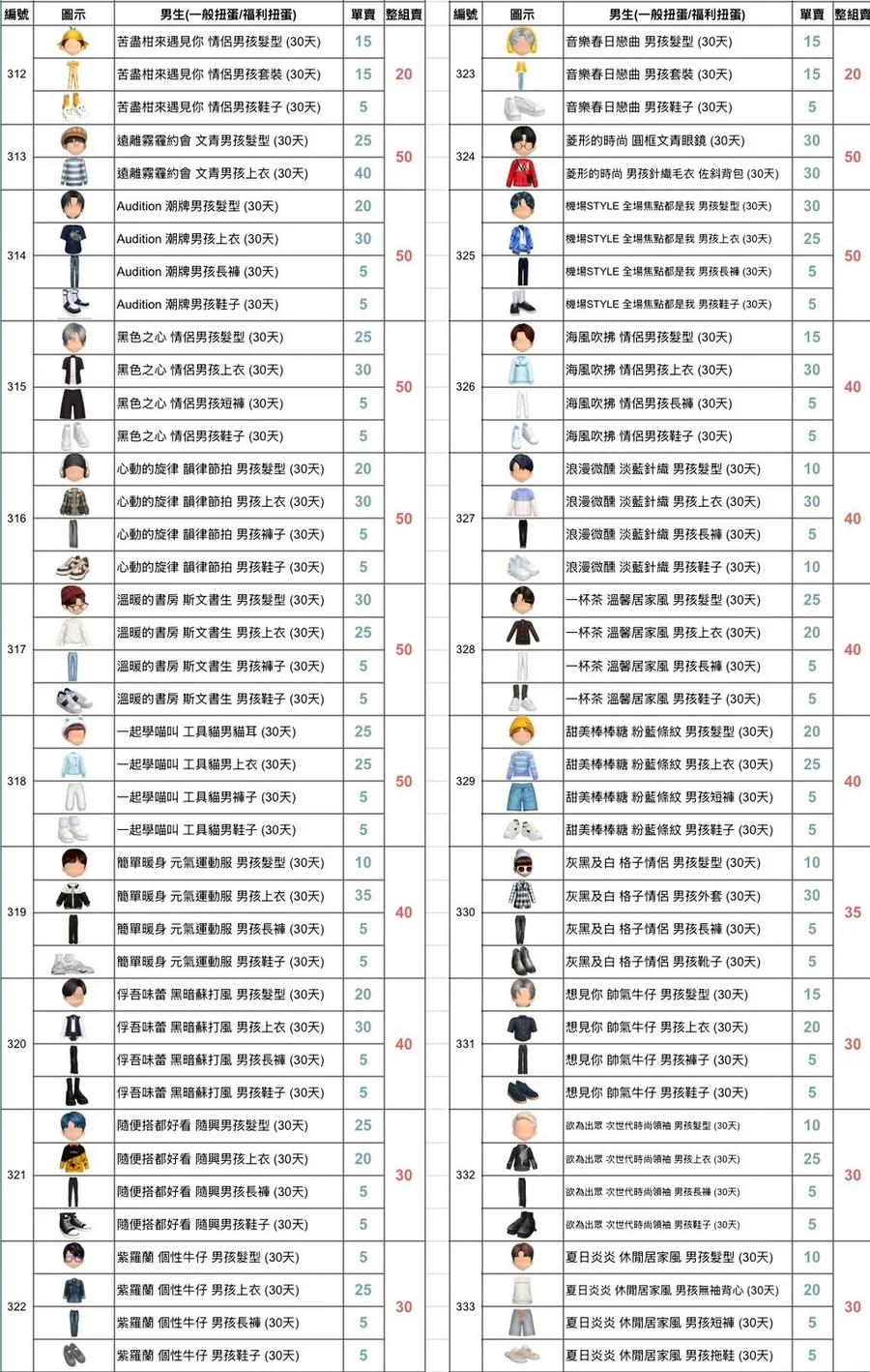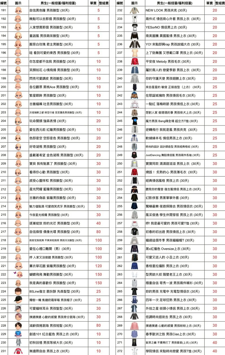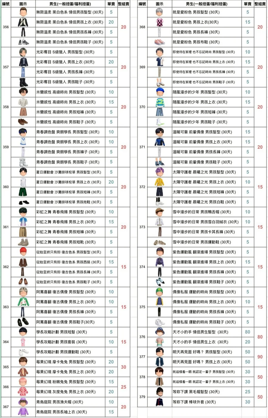 偶像私服 運動的時尚 男孩 (30天)