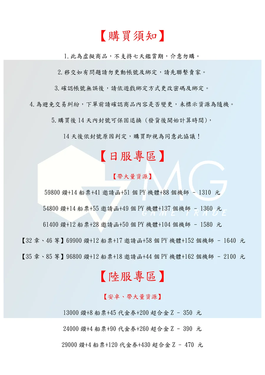 4.為避免交易糾紛,下單前請確認商品內容是否變更,未標示資源為隨機。