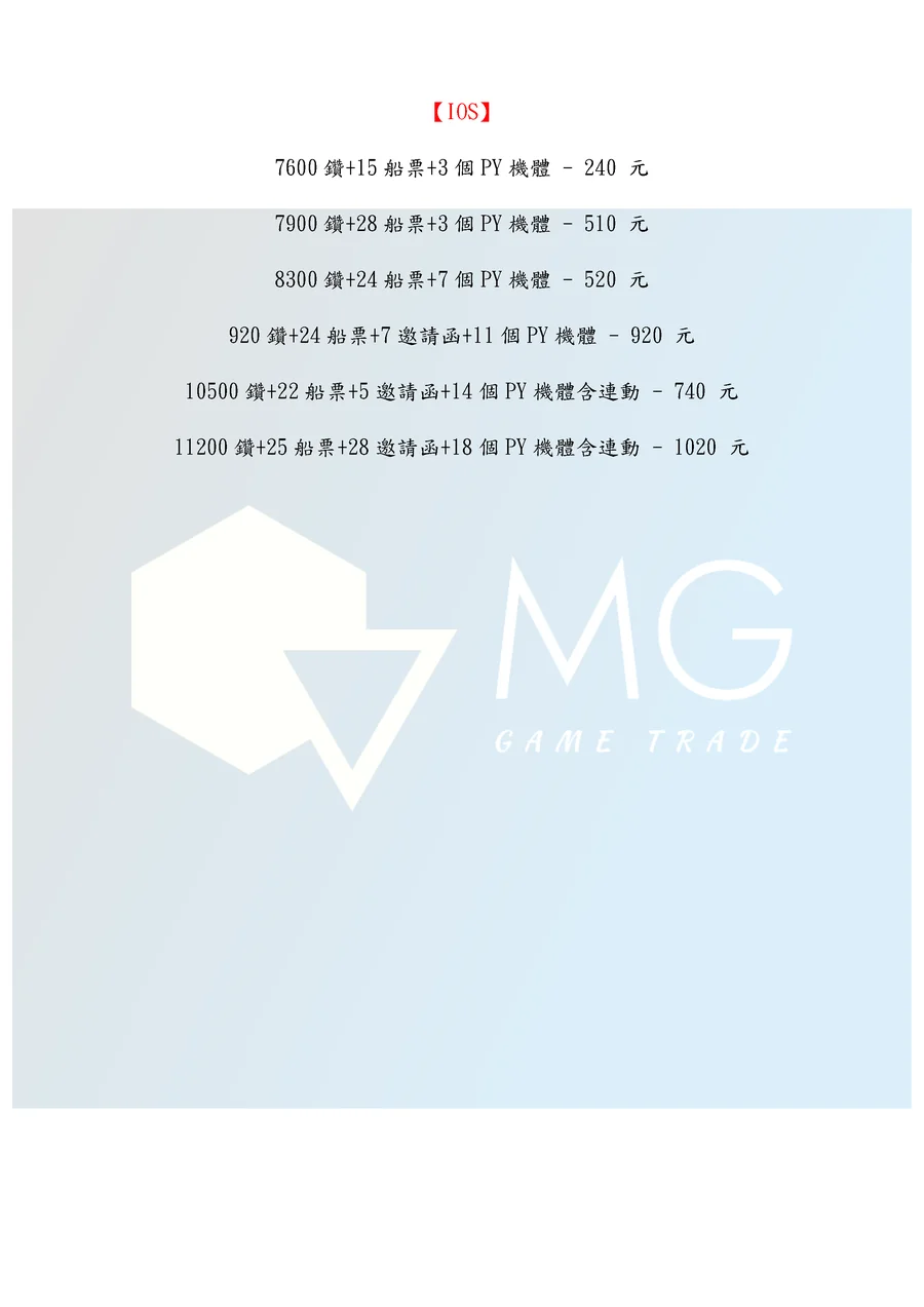 商品類型:帳號