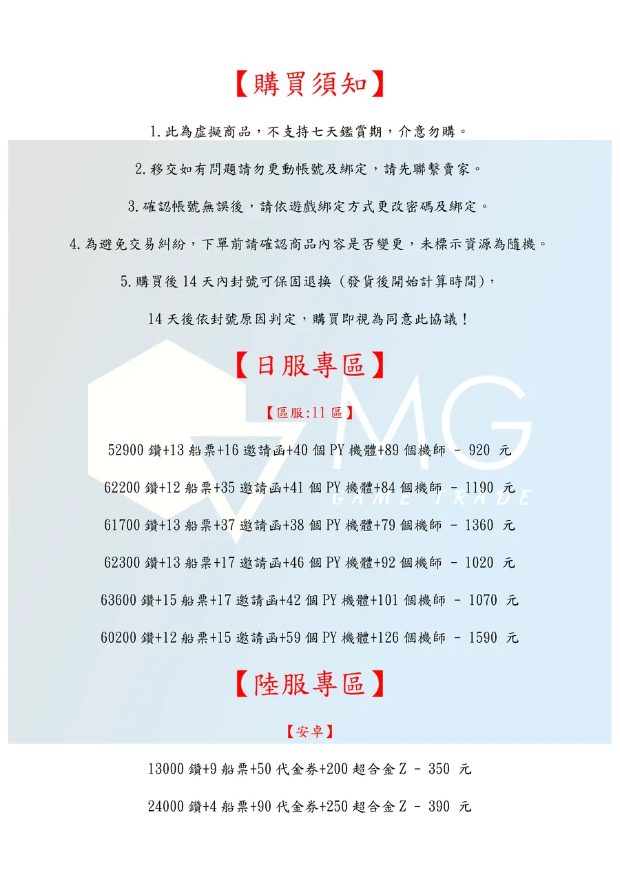4.為避免交易糾紛,下單前請確認商品內容是否變更,未標示資源為隨機。