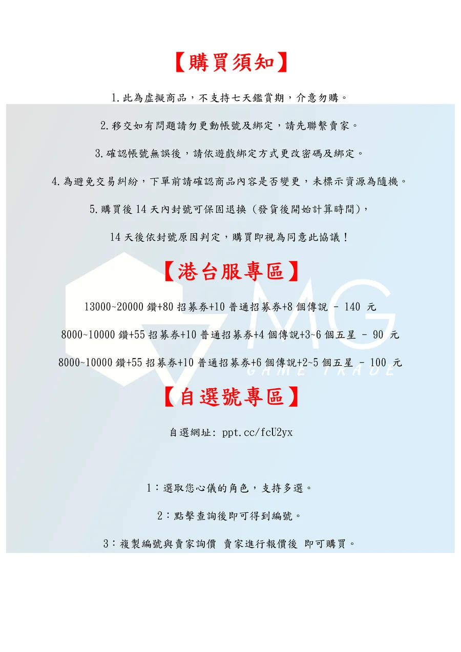 14天後依封號原因判定,購買即視為同意此協議!