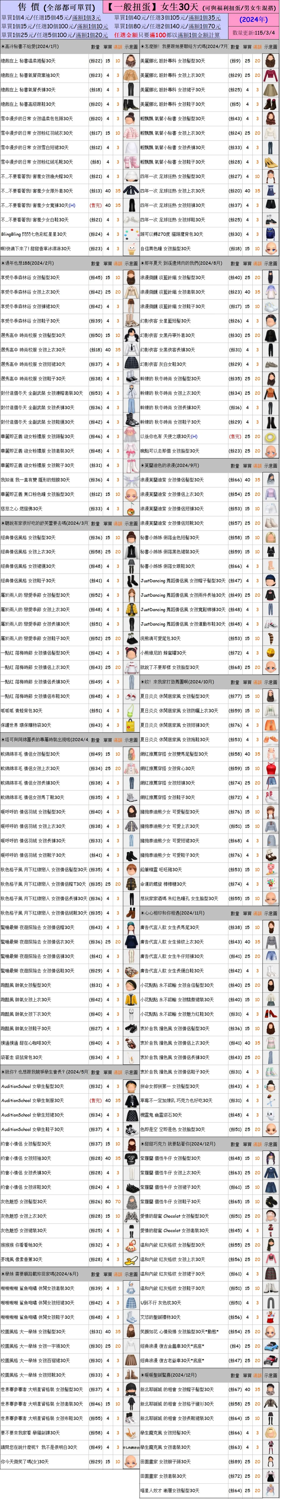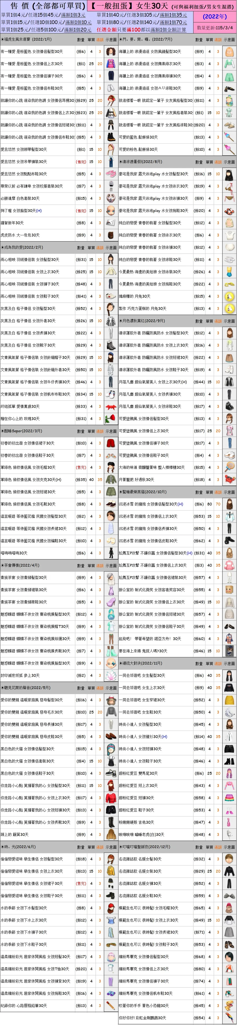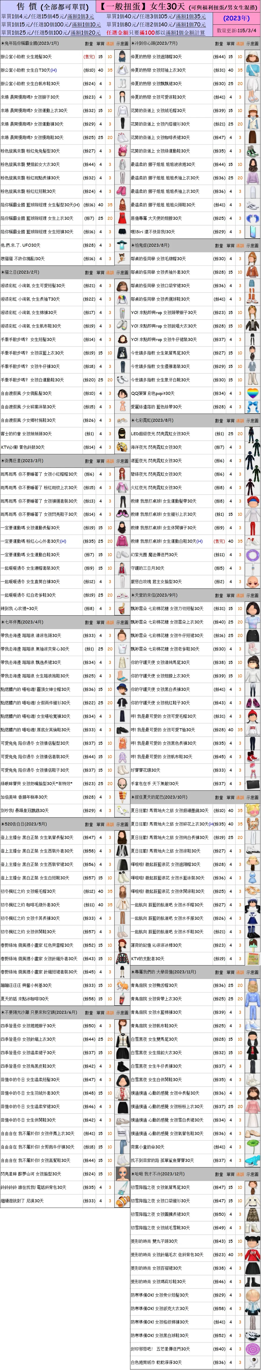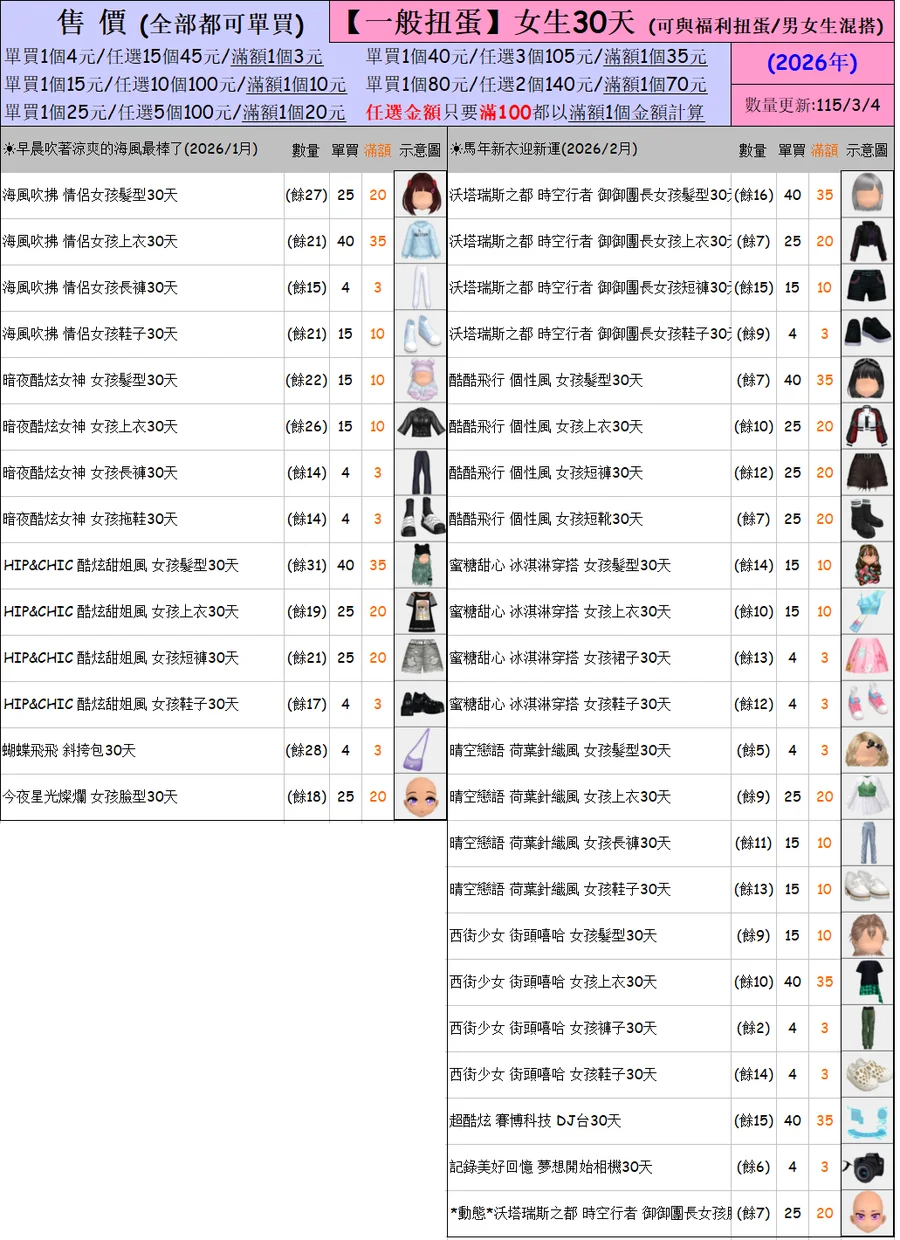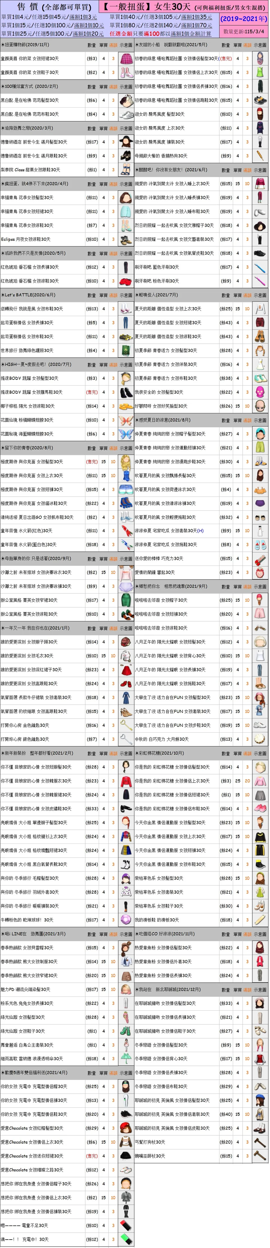 出清 [女生一般扭蛋30天] [115/3/4更新]