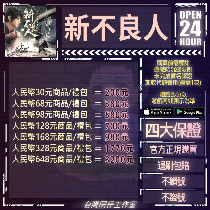 3.部份中國手遊禁止第三方代儲,如因第三方代儲導致您有任何損失,