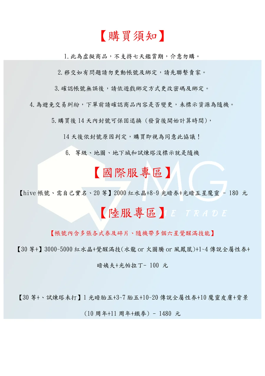 14天後依封號原因判定,購買即視為同意此協議!