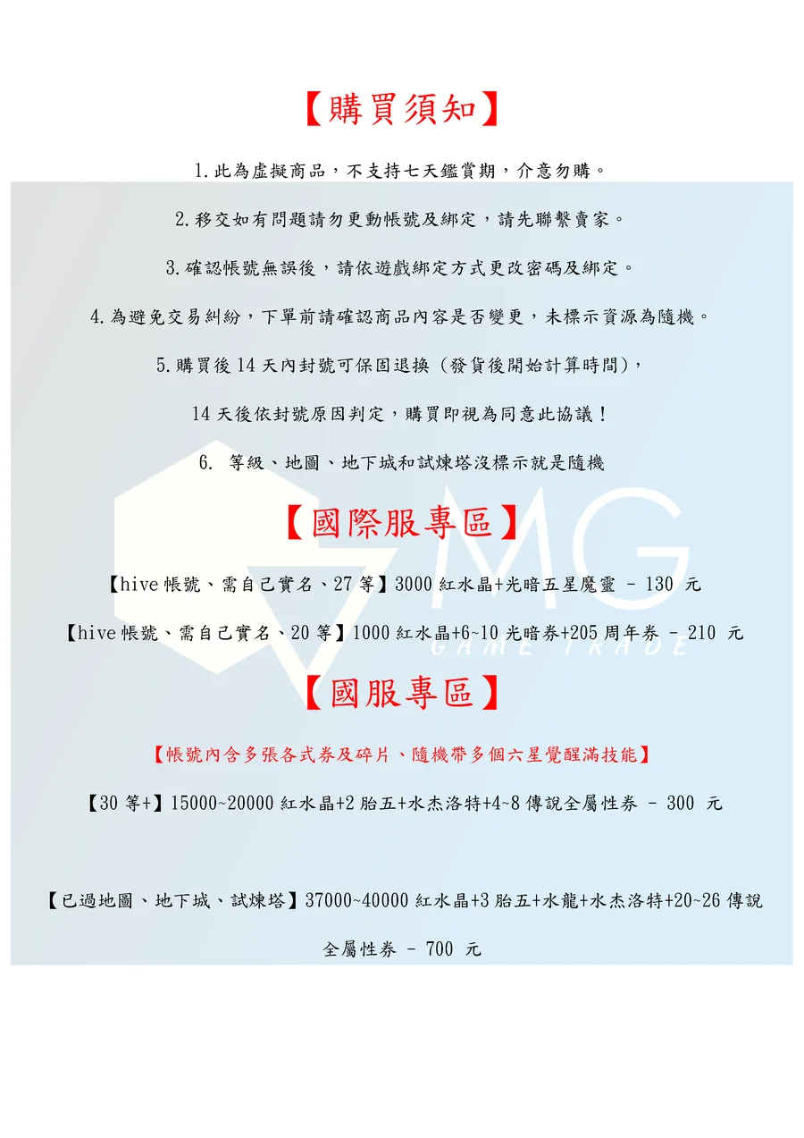 商品類型:帳號