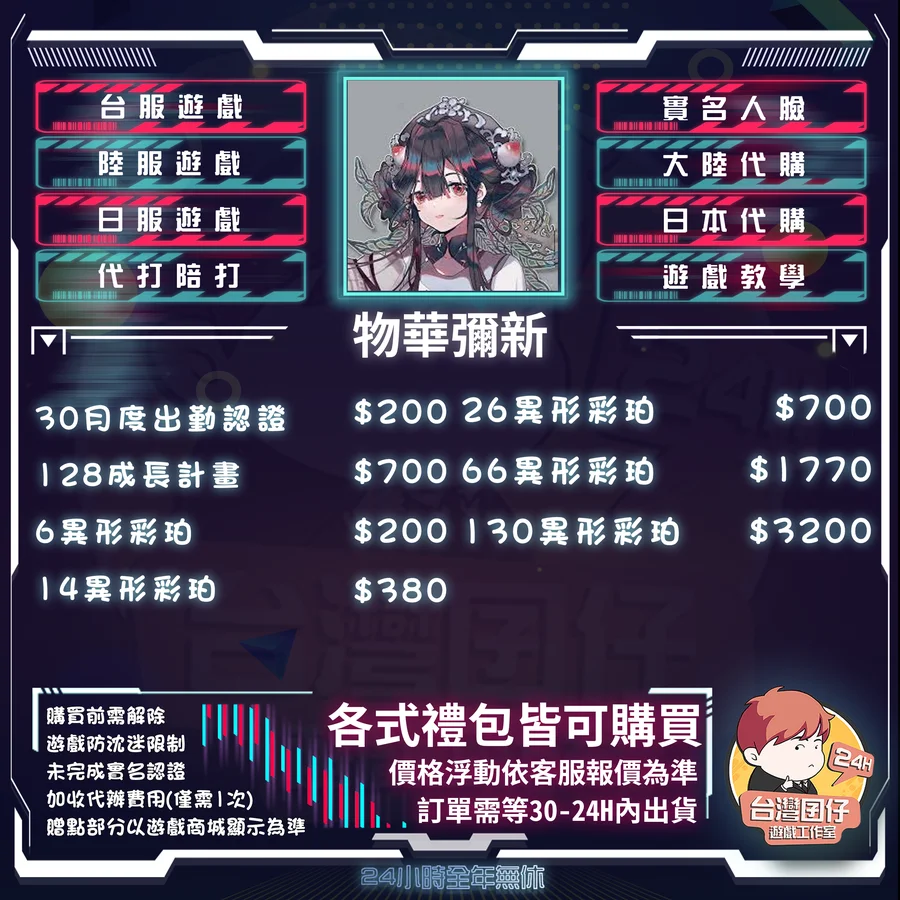 1.因商品成本+手續費+代付服務費,所以遊戲價格與代儲價格會有些差異。