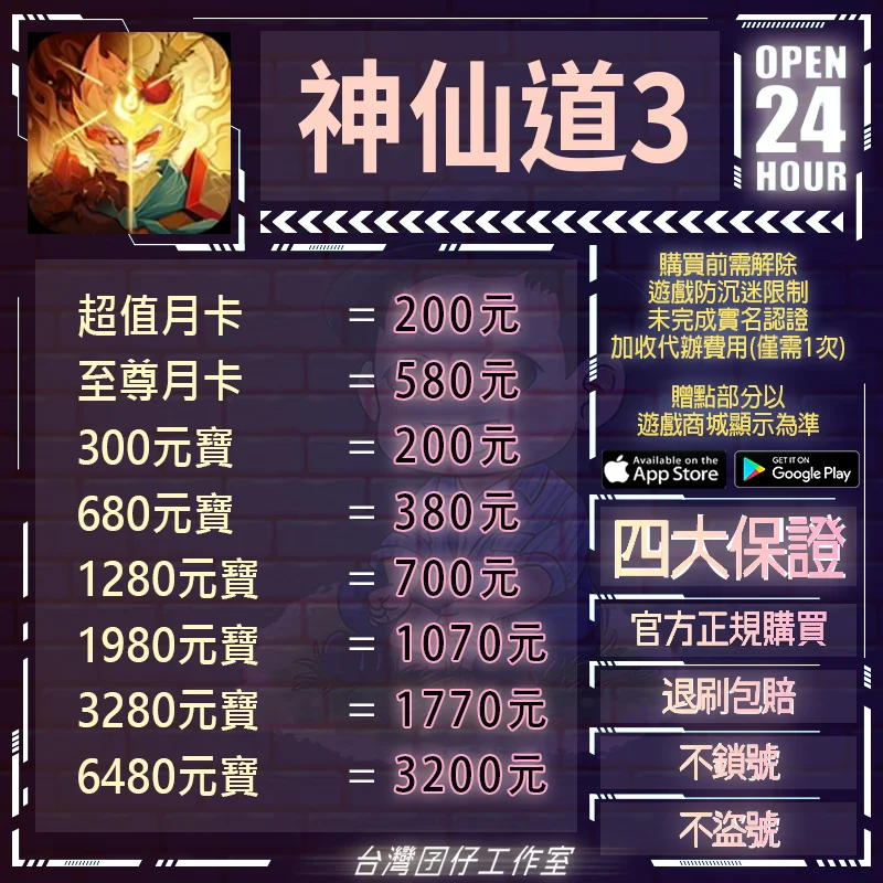 【300元寶=200元】🏆24H客服🏆現貨秒出🔥台灣囝仔🔥神仙道3陸服🔥20萬保證金