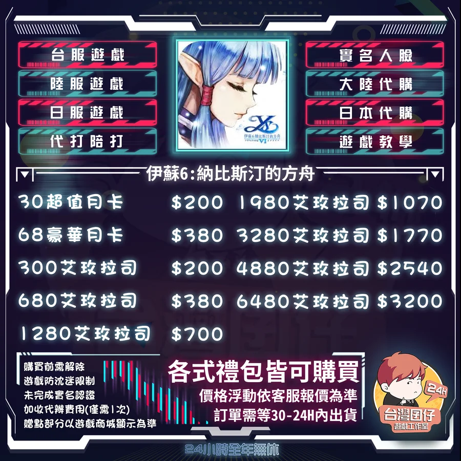 【6480艾玫拉司】🔥伊蘇6納比斯汀的陸服🏆24H客服🏆現貨秒出🔥台灣囝仔🔥20萬保證金