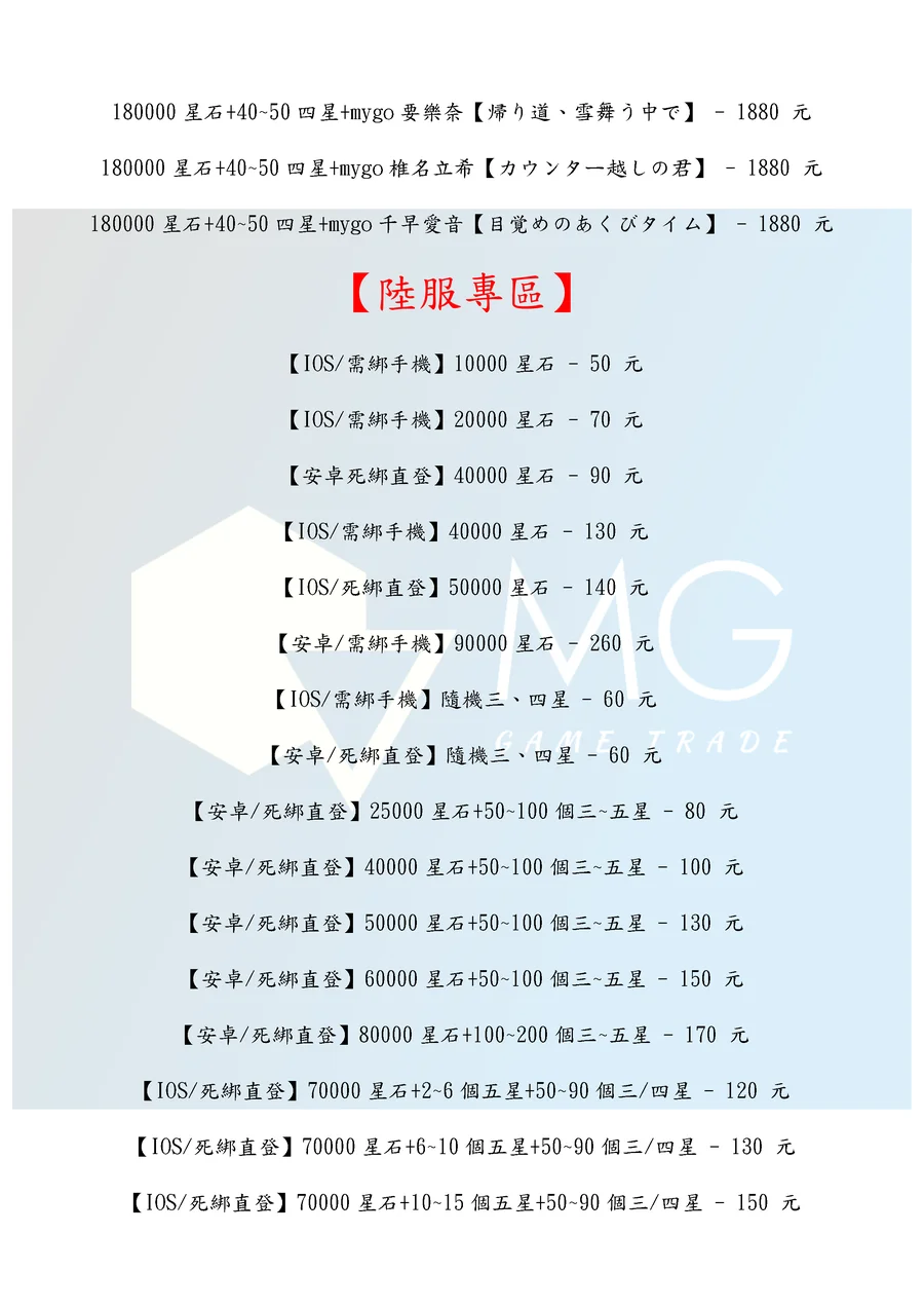 商品類型:帳號