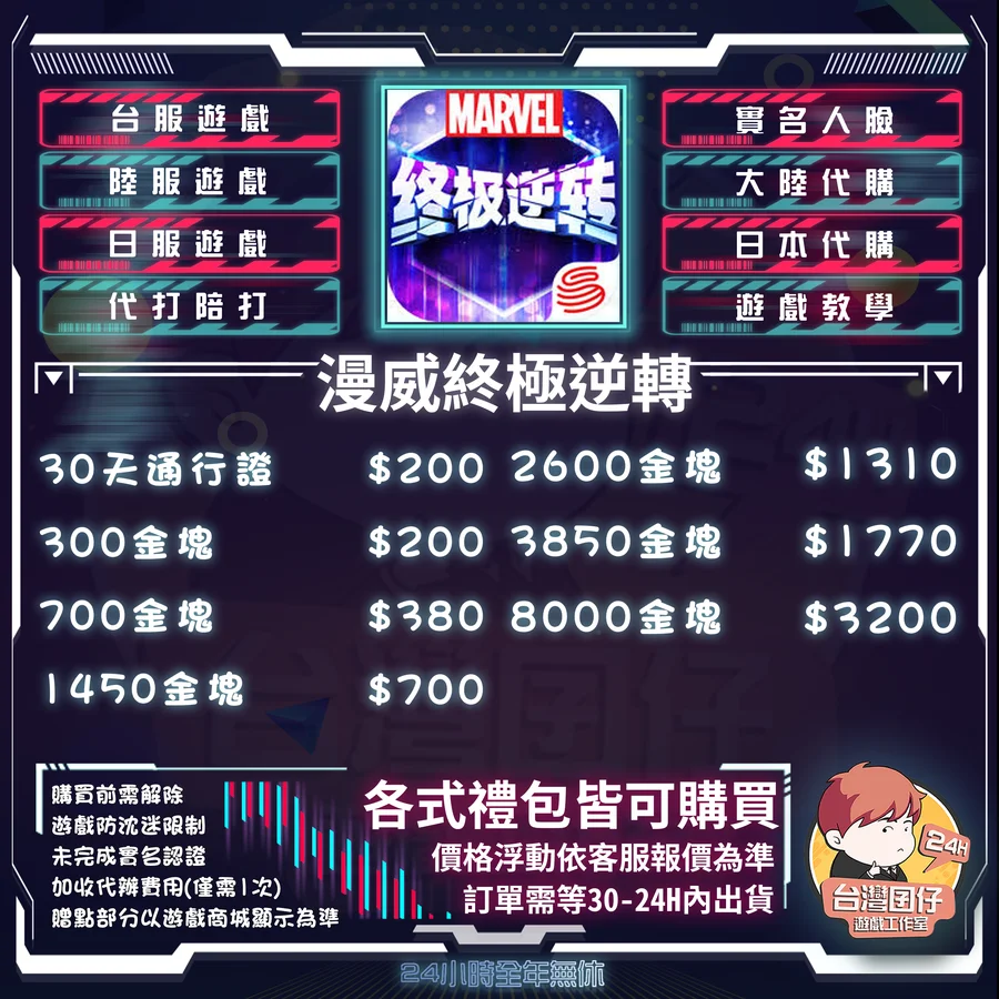 1.因商品成本+手續費+代付服務費,所以遊戲價格與代儲價格會有些差異。