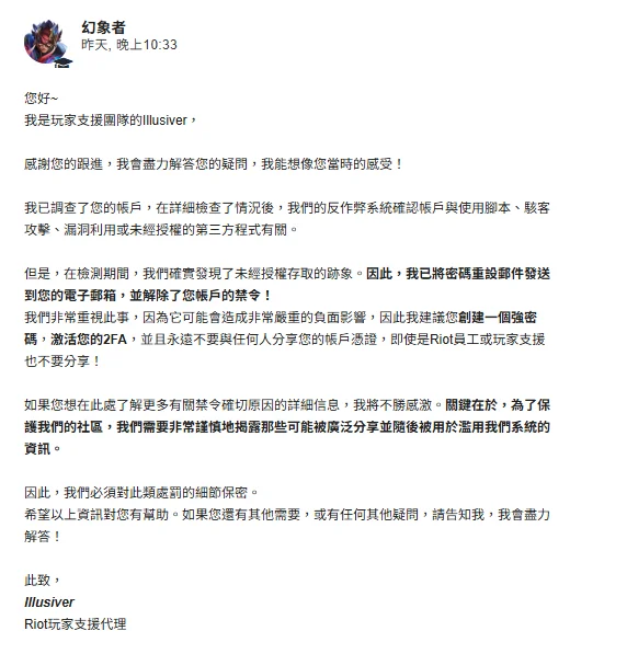 「非常感謝你們幫我解封!讓我能繼續和朋友一起遊戲!」 — 玩家1