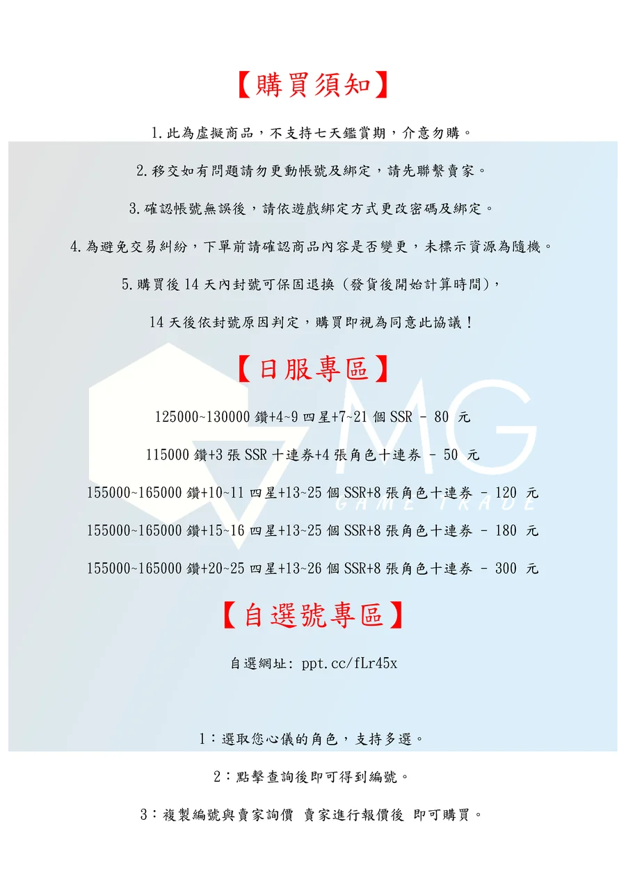3.交易時確認帳號資源無誤後,切記依照遊戲綁定方式更改密碼以及綁定。