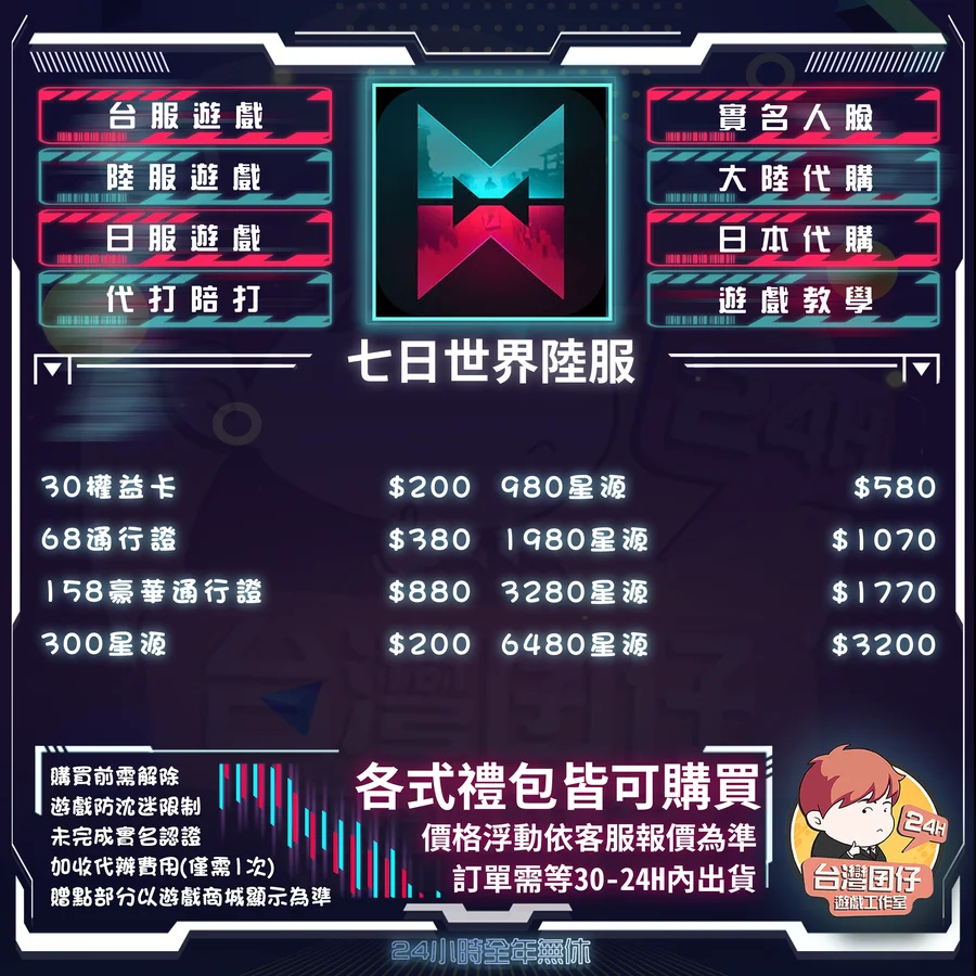 1.因商品成本+手續費+代付服務費,所以遊戲價格與代儲價格會有些差異。