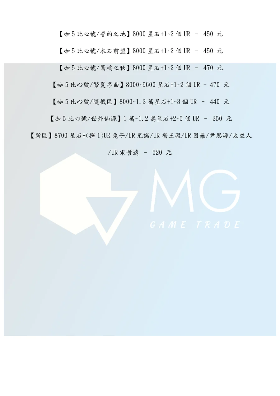 商品類型:帳號