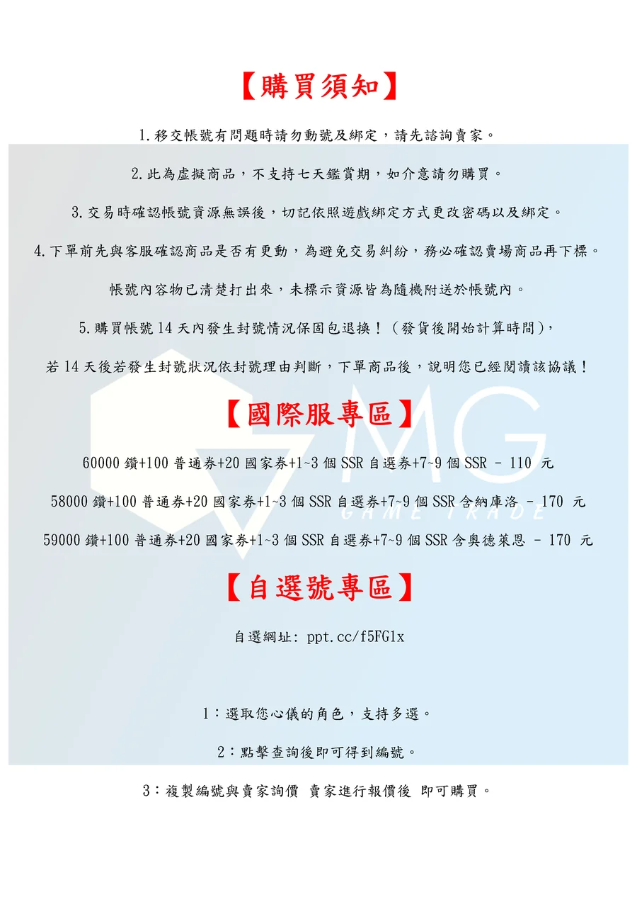 3.交易時確認帳號資源無誤後,切記依照遊戲綁定方式更改密碼以及綁定。