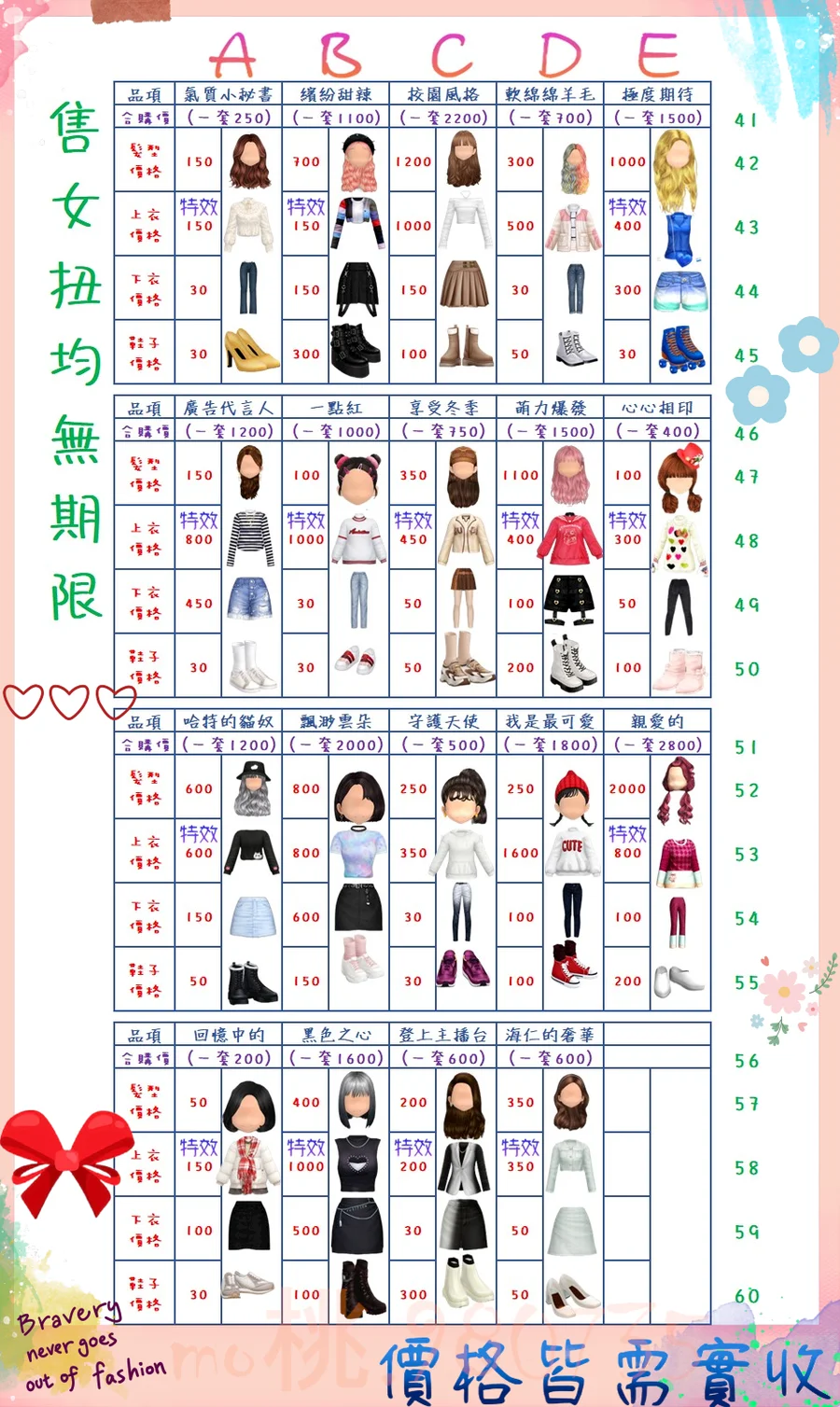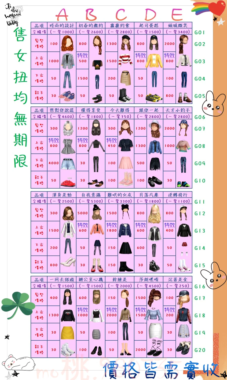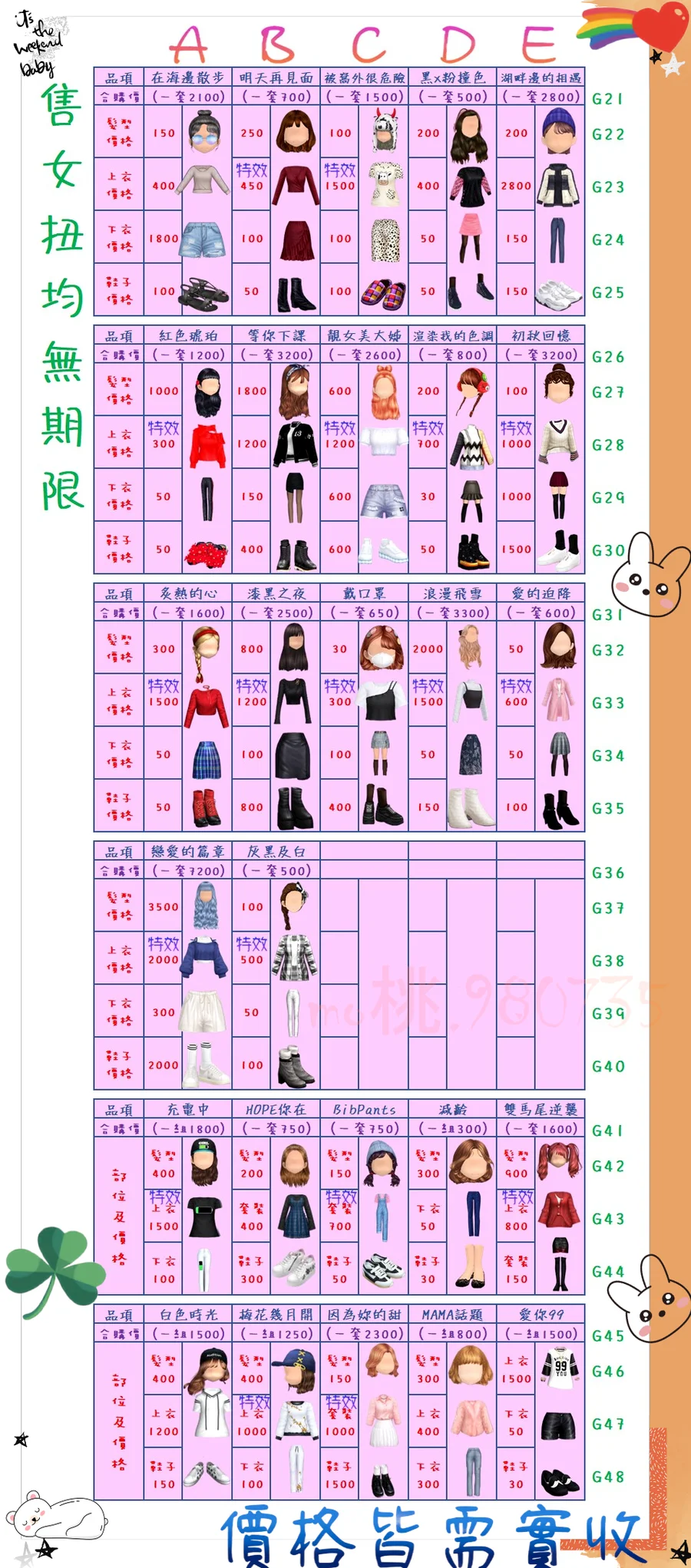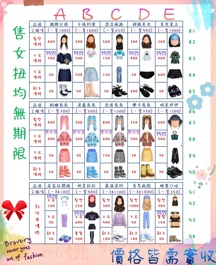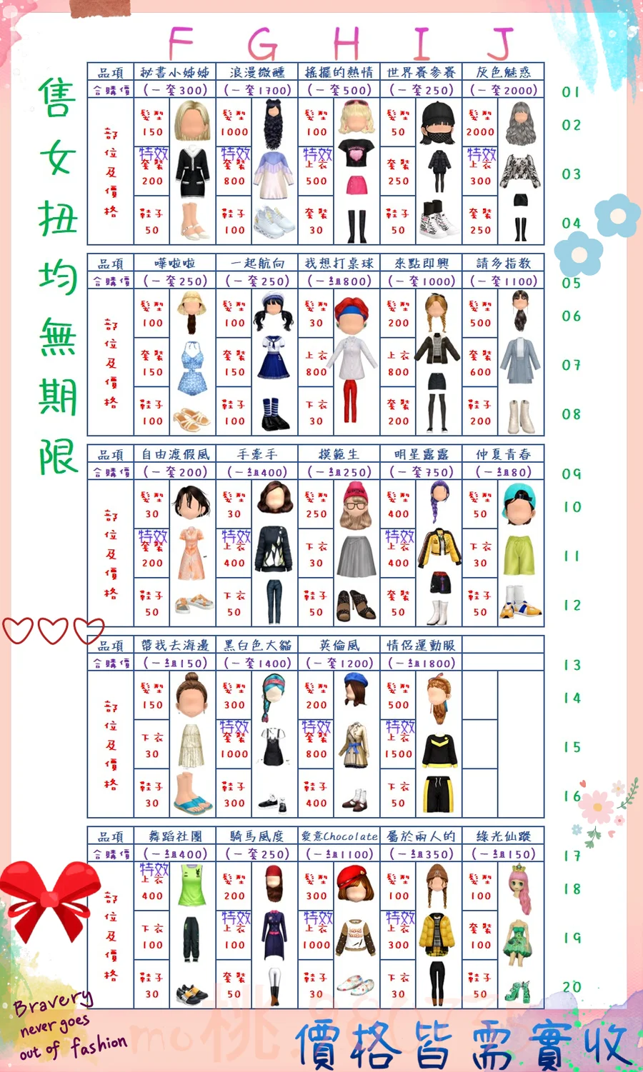 價格都是需要實收,另請先告知男生還女生的在附上編號!