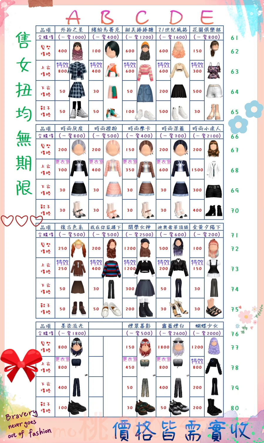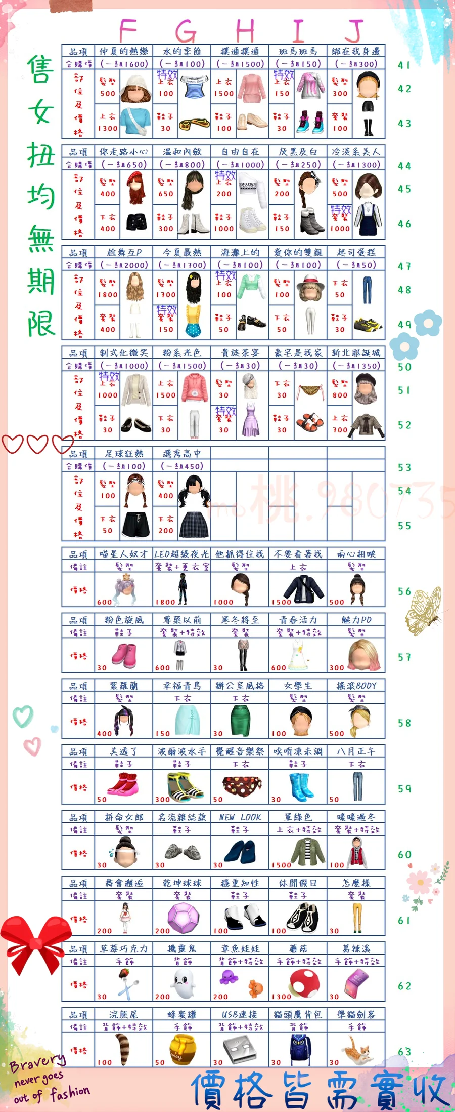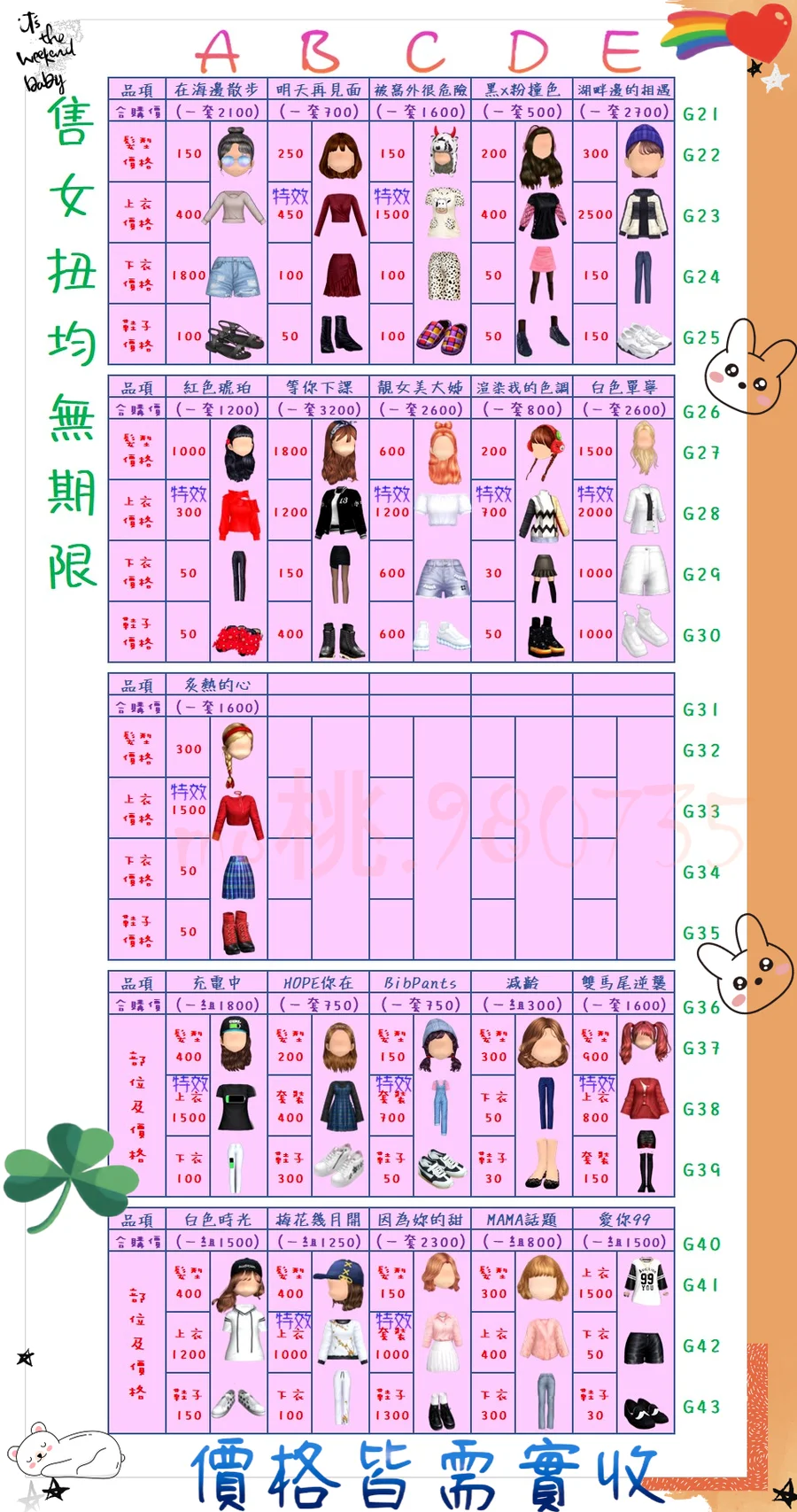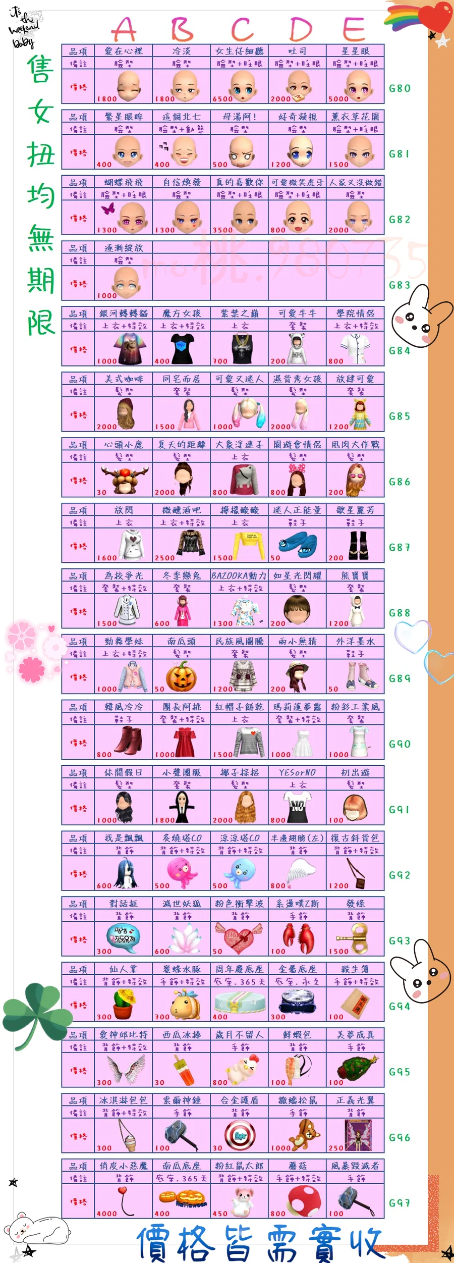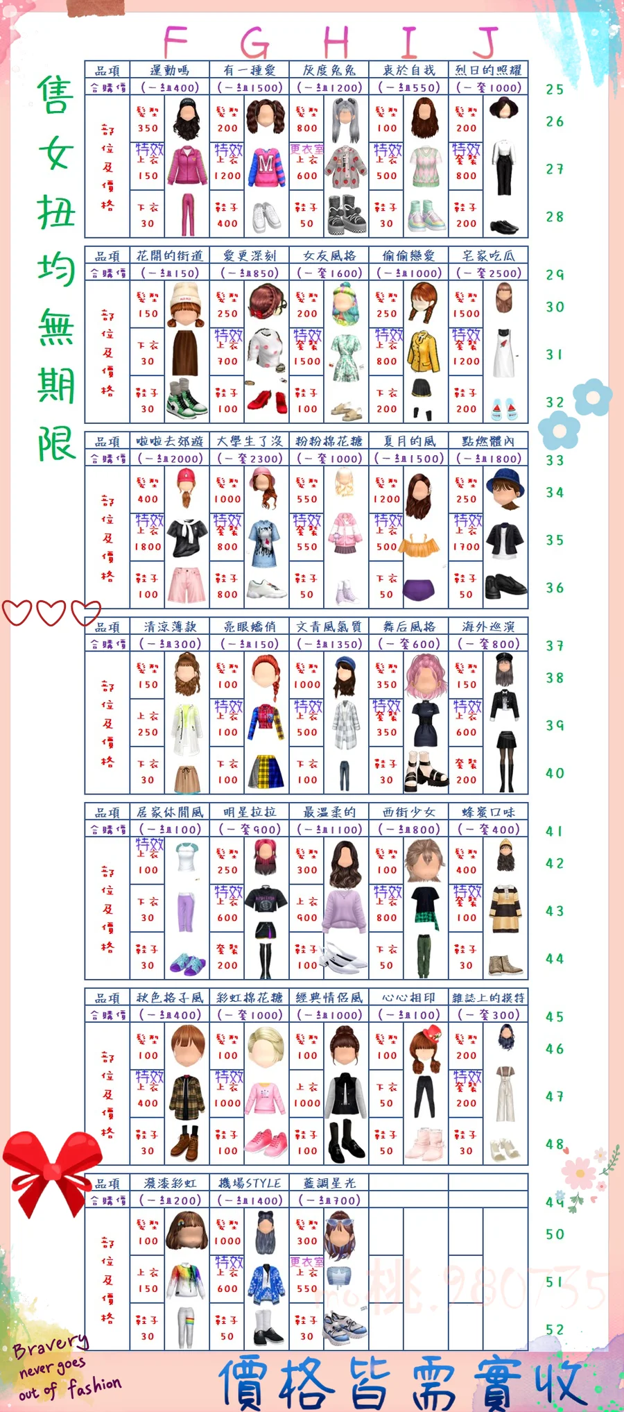 價格都是需要實收,另請先告知男生還女生的在附上編號!