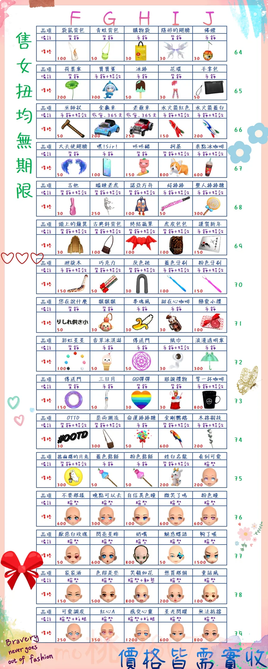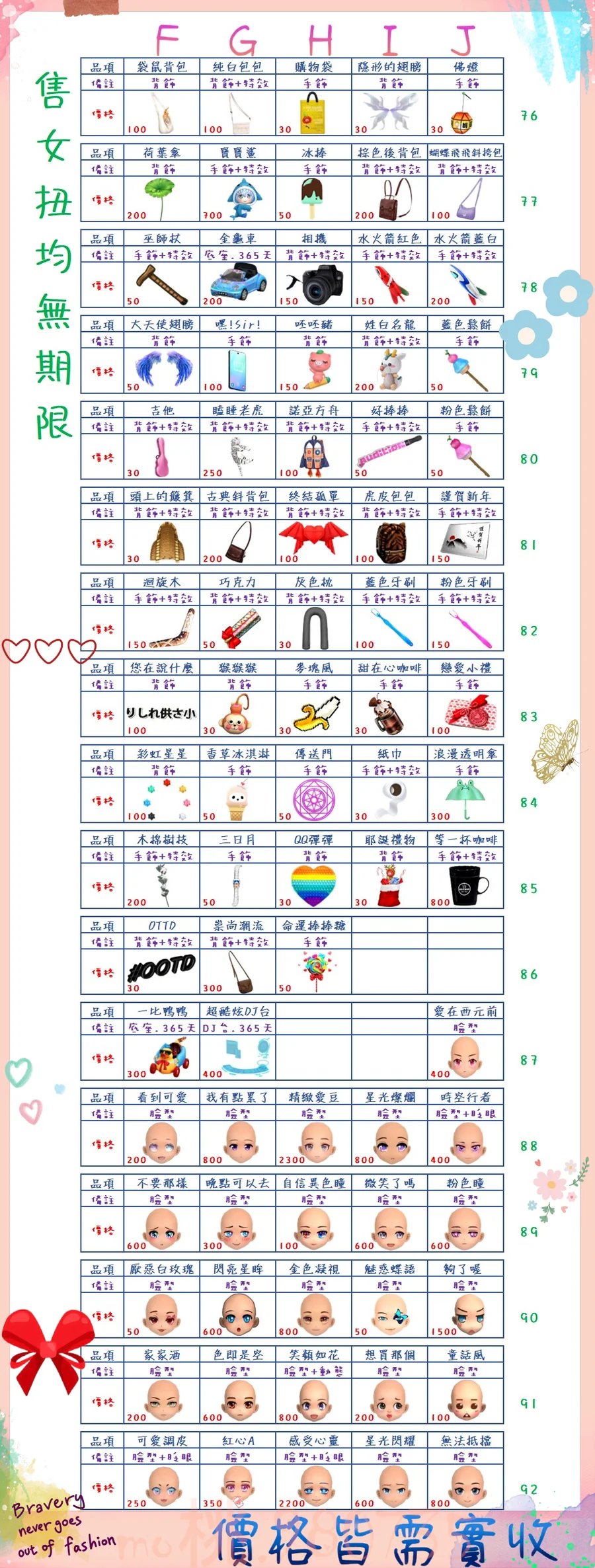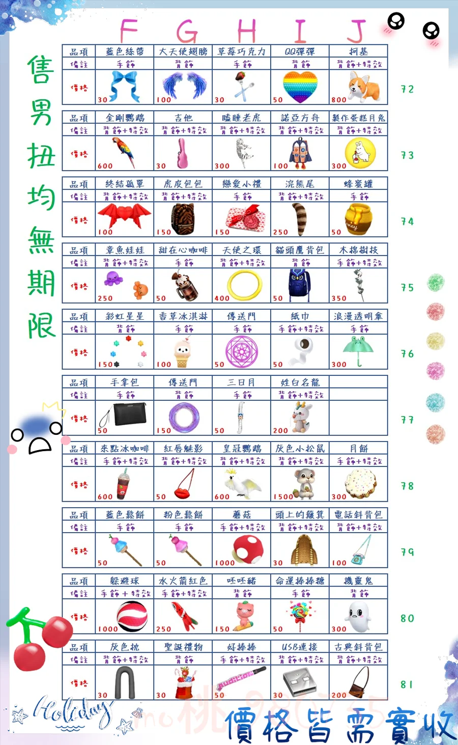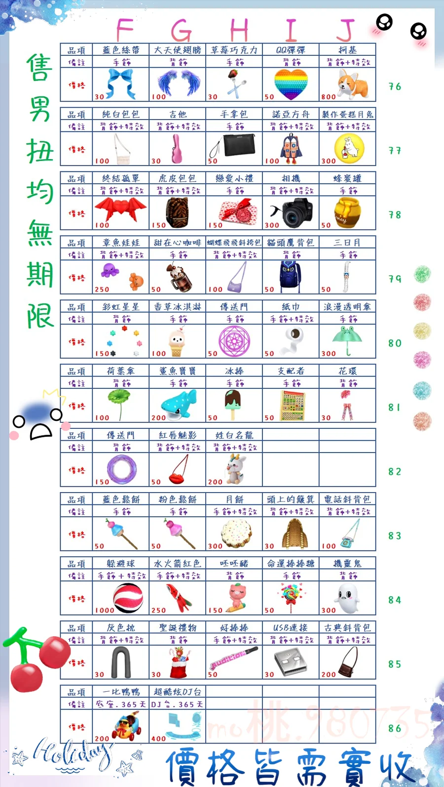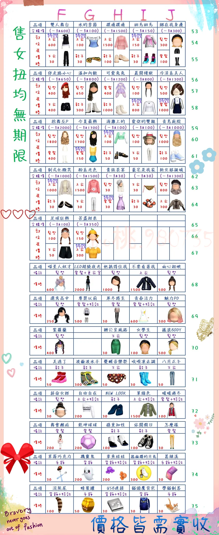 價格都是需要實收,另請先告知男生還女生的在附上編號!