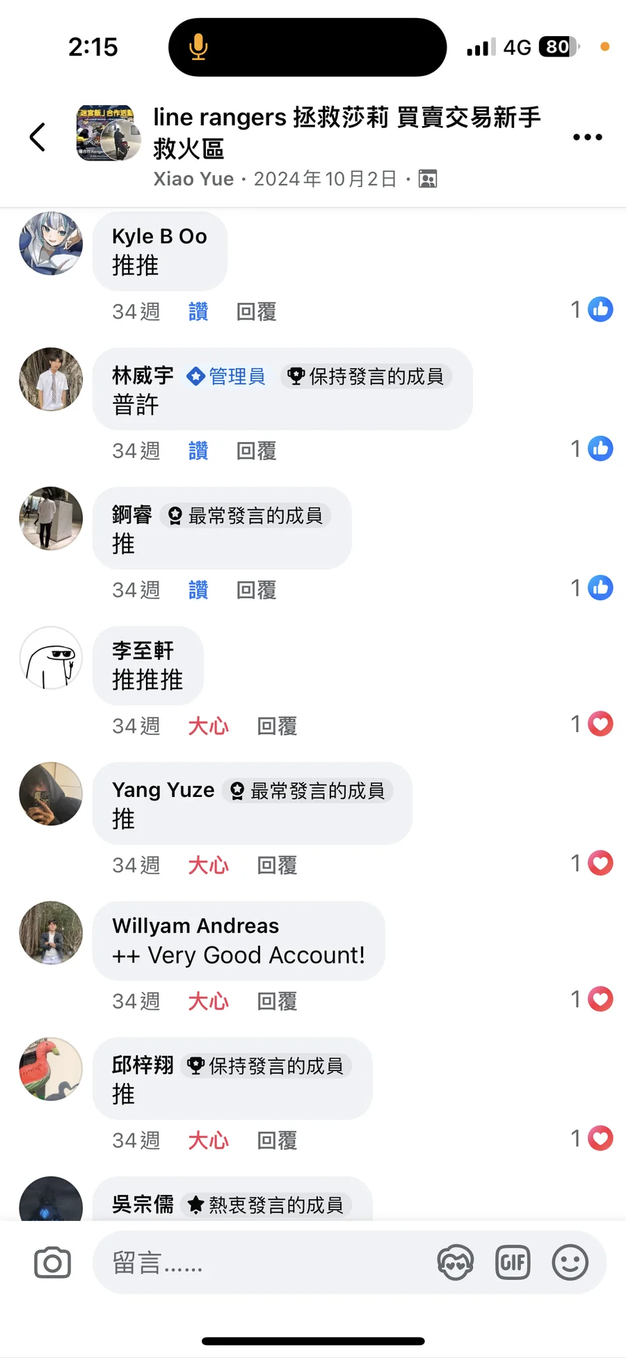 我會在幫你評估! 交易數百筆 fb 公誠 Xiao Yue