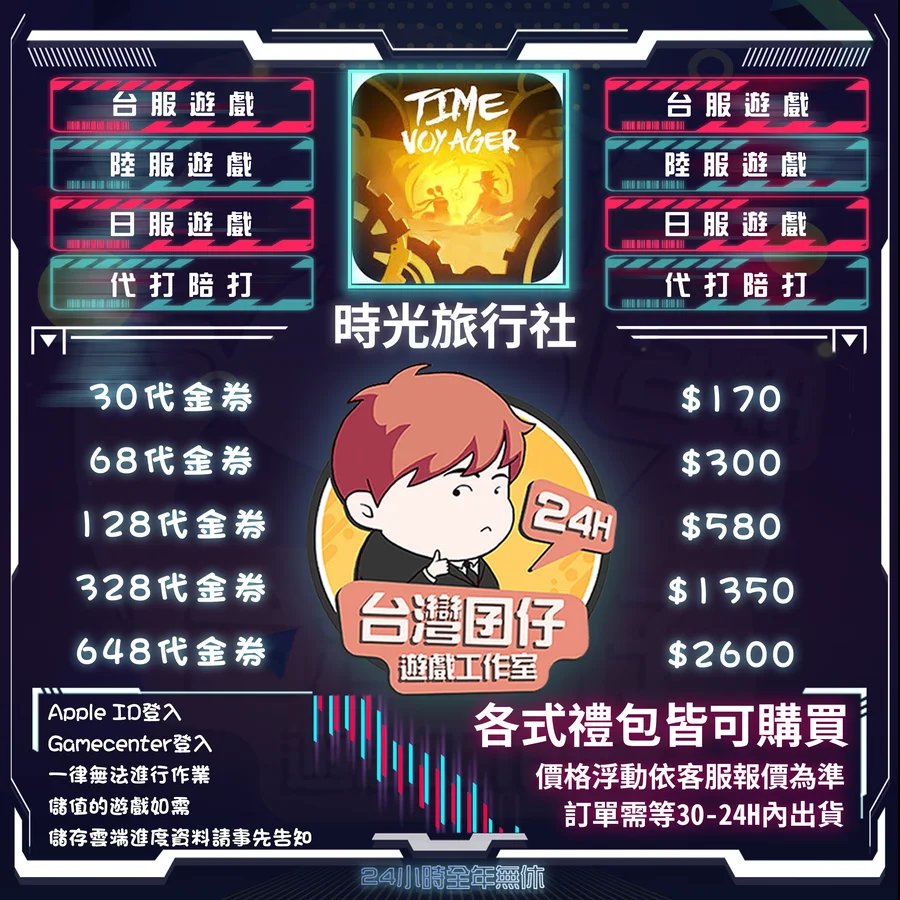6.台灣囝仔台陸手遊代儲,純粹提供代儲服務並收取服務費,無賺取中間差價