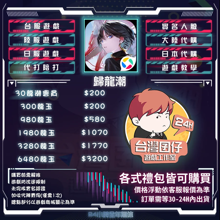3.部份中國手遊禁止第三方代儲,如因第三方代儲導致您有任何損失,