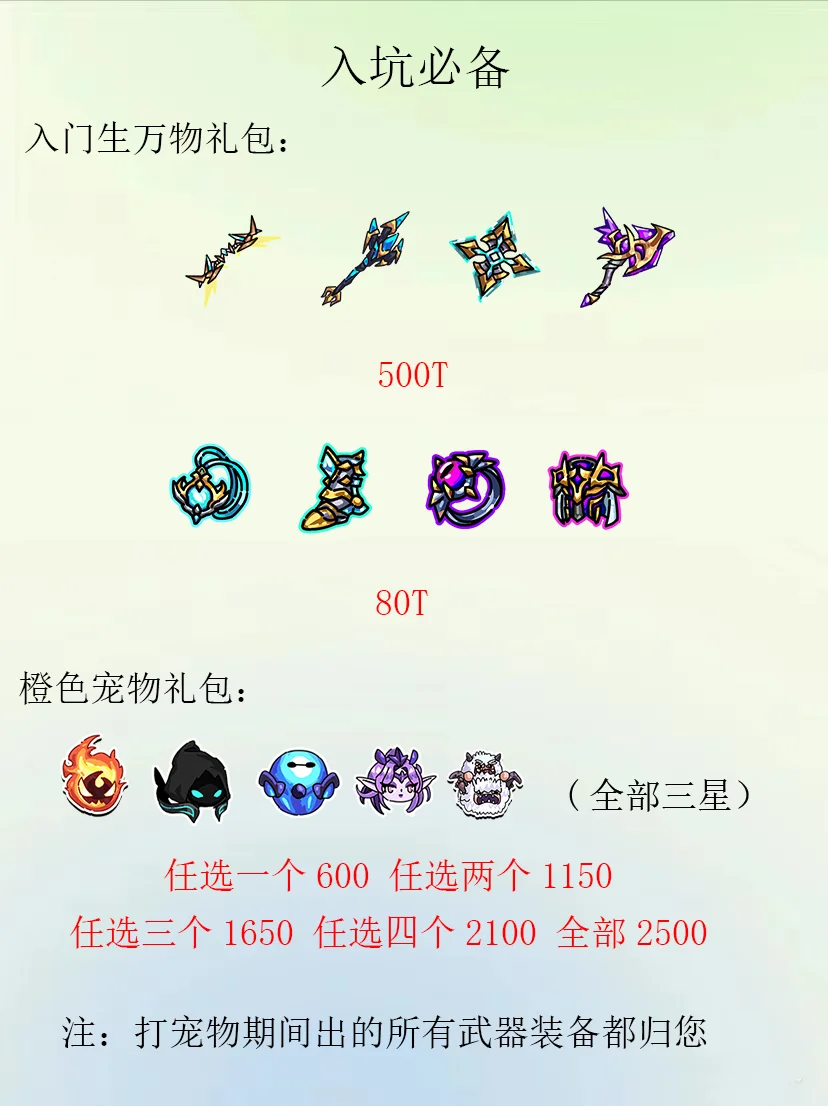 宠物标价均为三星价格,代打宠物依据号上的配置需要一些复活石