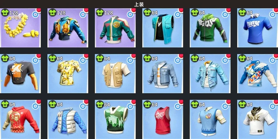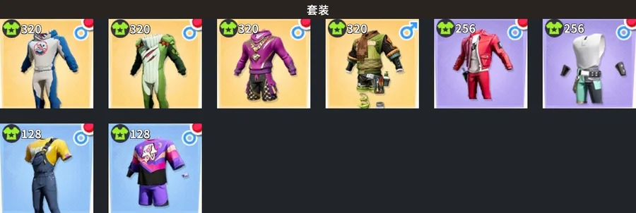 [大白鯊]套裝,[侏羅紀]套裝,[百萬先生]套裝,[光合作用]套裝,[全城通緝]套裝,[釘鐺]套裝,[珊瑚熱]帽子,[百萬先生]帽子,[無主之地]帽子,[全城通緝]帽子,[釘鐺]帽子,[街頭快閃]墨鏡,[百萬先生]墨鏡,[粉色西裝]墨鏡,[臥虎]墨鏡,[夏日狂歡]花環,[守望者]上衣,[臥虎]上衣,[百萬先生]揹包,[百萬先生]手套,[釣魚佬]手套,[全城通緝]手套,[職業西裝]戒指,[臥虎]褲子