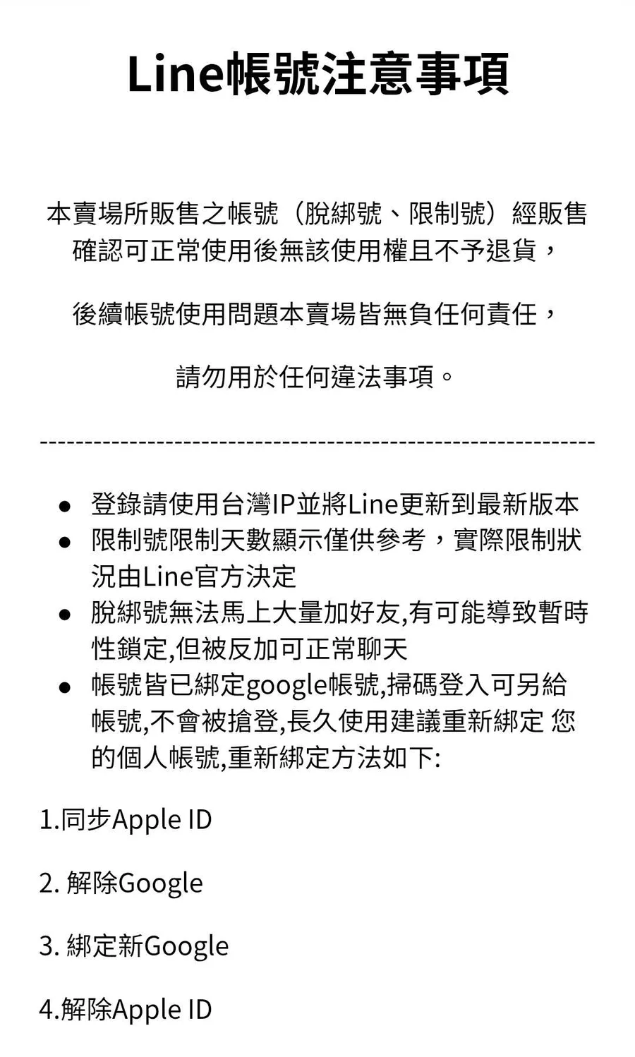 Line 新號/脫綁號/發貼圖專用號 google登入 已綁定google帳號 無手機綁定,無社群功能,其他功能正常 可直接VPN 購買他國貼圖主題 價格浮動,請私訊詢價,下單視同已閱讀圖片內容,請遵守使用方式。