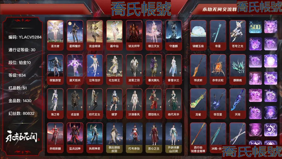 【OBYLACV528442】51紅1430金丨等級634丨鉑金1丨金磚76丨幻絲80832丨通行證已升級Lv.30丨紅色神品:逐光者,錦鯉玉扇,星輝魔紗,流金曉錦,帝星,蒼穹之光,畫中仙,悍虎斬,赤帝炎輪,獄炎燼甲,櫻雲天女,守墨麒,麒麟魄,龍雀,驚百里,天瓊,西行劫·如意金箍棒,冰魄-長劍,2674·九陰,涯角,狂龍,靈犀,靈狐幻刃,畢方,烈陽,少陽劍,狼主,鳳求凰,夜魅遊瑩,通天狐襖,泣珠龍紗,化生明王,凌霄之羽,暮光胴丸,香雪水蘭,海之奇,戎金狼,初代玄女,蝶夢,沙漠香風,熛怒煉火,絕代風華,墨離,逆晦朔,天罰,飛將戟,赤皓新囍,監兵凶神,執明神君,比羿,詭月·幽薔,熱門皮膚:戰旗·詠武,!戰旗·詠武,變身器:御祥雲,炎烈珠,凱蒂貓·魔杖,珥冰,神烏造像,葫蘆兄弟·三娃葫蘆,彩俑娃娃,甜夜安眠·幻夢鯨彩,金人俑,荊魂,西行劫·神君印,雪霜姿,大耳狗·泡泡機,綠野守護·竹韻悠,2674·初代機,拳皇·勾玉,千秋匠心·兇虎,封神錄·赤蓮,夜薔薇,葫蘆兄弟·寶葫蘆,噬骨,攬九天,百戰·枷鎖,鎮冥司,夏日派對·好椰,角色金色皮膚:倒反陰陽·熾羽,代號·赤飴,崑崙之主,開闢鴻蒙·山川潤,觀山海·相柳,夜華朝,自動人形·2B,耀世魂花,玄豹姿,夏日派對·午後瑰夏,梨園傳奇·素貞,紫金玉女,紅川仙子,龍之道·自知,霜天紅葉,雪山天女,碧水青天,九陰聖女,音浪震盪·爆裂鼓點,怪誕狂想·致命玩笑,怪誕狂想·紅藍狂想,怪誕狂想·街頭夢語,怪誕狂想·路奇迷蹤,怪誕狂想·友情歲月,沙暴蒼狼,鑄神·冥天魂使,鬥羅大陸·唐三,銀狼裘,噬月天狼,龍之影·龍虎鬥,蒼狼之主,追獵,倒反陰陽·凜冬,巔峰極速·蕾雅,拳皇·不知火舞,千秋匠心·玉葉景,長歌詩韻·胡旋女,觀山海·青鳥,西行劫·白骨夫人,紅鸚袍,夜吻,神鷹之女,夏日派對·昭夏流金,龍門·飛天,軒轅劍·拓跋玉兒,驚雲羽,浣煙紗,龍之道·求真,花無痕,金羽聖鷹,蜃樓魅影,璨銀魔梟,瀚海蒼鷹,不良人·李星雲,長歌詩韻·鷓鴣天,巫師3·傑洛特,巨闕,逆水寒·染煙,龍心熾焰,夏日派對·椰風夕照,龍之影·精武魂,聞道,逆水寒·江海滄瀾,醉山川,江湖行,遊四海,洛天依·星空投影,P5R·芳澤霞VIOLET,巔峰極速·小可,三麗鷗家族·凱蒂貓,怦然心動·軟暖甜夢,長歌詩韻·遣唐使,新魔傑·辟邪帝姬,春日序曲·晨風,夏日派對·高校水著,山吹茶,輝燁少女,承雲蘭壽,春桃笑,龍之道·至純,天鈿女命,御宅羅夢,御宅花織,陰陽姬,清雅少女,貴胄少女,覺明尊者,冬日綺韻·白熊,九驪之君,夏日派對·夏海伏浪,武道無窮·少林,若水尊者,覺之一念,淨金寶相,八寶龍王,裟伽龍王,狩獵都市·暗夜利刃,音浪震盪·純真朋克,決戰平安京·戀念私語,千秋匠心·青枝瓷,決戰平安京·朔夜遊方,決戰平安京·御神之刃,陰陽師·赤影妖刀姬,甜夜安眠·琉璃香檳,汐淚,庖丁·餚嬋,綠野守護·暗沼摩羅,封神錄·敖丙,觀山海·精衛,阿娜希塔,楚韻九歌·湘夫人,逆水寒·鳶紗,觀山海·文鰩,巨鯨客,赤霧煙霞,夏日派對·弄潮逐浪,蟄龍吟,掌珠仙子,龍之道·無拘,怒浪,煦陽漫敘,倒反陰陽·鐵面,長歌詩韻·滿江紅,開闢鴻蒙·金戈止,2674·爭鬥洪流,長歌詩韻·戍關將,複製體·尼爾,新魔傑·斬魔天將,常勝袍,百戰·破荊者,弘毅袍,華夏寶甲·漢光,龍之影·過江龍,守誓者,神武,驍騎,P5R·雨宮蓮JOKER,喜樂祥羽,黃庭道,梨園傳奇·柳生,封神錄·申公豹,武道無窮·太極,司天命,幽篁山鬼,朝聞道,金羽客,若谷,代號·冰凌,不良人·姬如雪,音浪震盪·群星光彩,春日序曲·寒芷,祿運玉霄,紫微星命,封神錄·龍吉公主,寒煙素,自動人形·A2,西行劫·玄霜仙兔,西行劫·玉兔精,藏雨閣主,金襦玉衫,夏日派對·仲夏霜華,梨園傳奇·小青,赤丹朱湛,寒英素雪,姑射真人,禍津素盞,鑄神·風衛天翎,鬥魂,麟鹿大鎧,花之傾奇,蒼雷丸,獅子丸,九州遺珍·福壽仙,甜夜安眠·鵝黃紗夢,三麗鷗家族·大耳狗,春日序曲·朝顏,開闢鴻蒙·風雨諧,夏日派對·長夏清瀾,鑄神·天祿瑞光,智繪·萍之緣,蘭庭月,沐昭,新倩女幽魂·流紈裙,秋藏桂,P5R·奧村春NOIR,逆水寒·玄喵,云溪仙子,綠野守護·悠竹萌客,夏日派對·初夏緋莓,楚韻九歌·山鬼,鬥羅大陸·唐舞桐,武道無窮·詠春,綺雲衫,觀山海·腓腓,2674·千機喵,絮雲衣,龍之道·不懼,逆水寒·夜行,福瑞天澤,葫蘆兄弟·蛤蟆頭領,千秋匠心·杜虎符,街頭狂歡·不敗擂主,觀山海·秋神蓐收,西行劫·悟空,行空裘,冬無歸,P5R·高卷杏PANTHER,熾火照夜,春日序曲·夜汐,怦然心動·音律織光,羽影,封神錄·哪吒,夏日派對·盛夏白陽,代號·絲蓴,干將莫邪,護世四法·持國天王,武道無窮·八極,觀山海·冬神玄冥,無常白袍,傾國傾城·羞花,百戰·玲瓏,春不斂,赤陽天狐,三麗鷗家族·酷洛米,喜緣紅線,夏日派對·赤夏悠漾,梨園傳奇·麗娘,封神錄·妲己,春日序曲·赤羽,護世四法·廣目天王,日影花陰,武道無窮·形意,黃昏巫主,複製體·凱妮,玄綬羅衣,卷王,季中賽2025·漠海,冥淵,楚韻九歌·雲中君,天工奧妙,夜綢袍,沙海之鳩,不良人·女帝,長歌詩韻·念奴嬌,壽竹雲春,怦然心動·熱力節拍,巫師3·希裡,觀山海·獬豸,夏日派對·半夏晚風,代號·玉膾,湛盧,逆水寒·極夜天曦,虹貓藍兔七俠傳·虹貓,金財聚輝,閻羅,封神錄·姜子牙,懷金袍,盜墓筆記·夜麒,雲間影,夏日派對·逐浪砂陽,赤焰戰靈,綠野守護·山漠獰影,蝕日之輝,夏日派對·極光夏夜,天虹詠,三麗鷗家族·美樂蒂,春日序曲·協光,開闢鴻蒙·日月明,雪鈴綺歌,巫師3·特莉絲,夏日派對·綺夏幻夢,龍之道·靈心,音浪震盪·永遠年輕,虹貓藍兔七俠