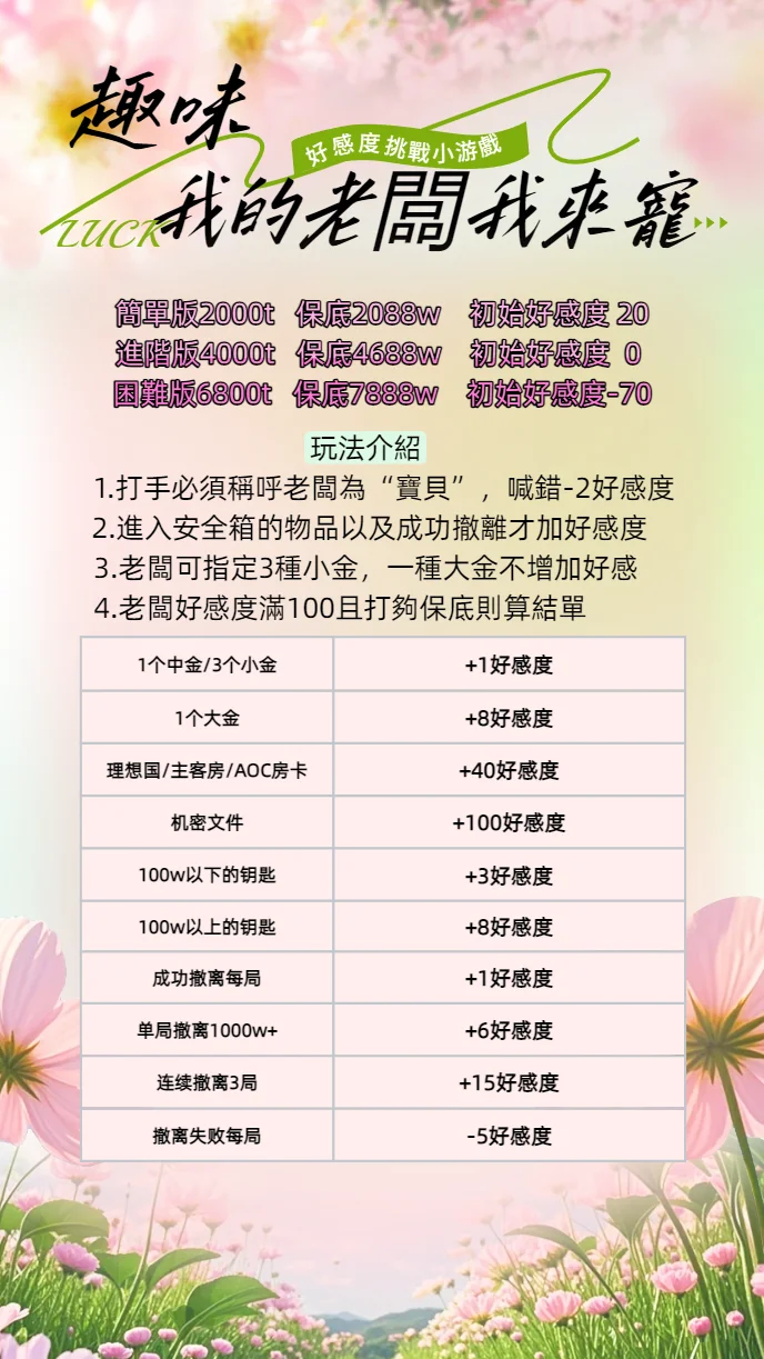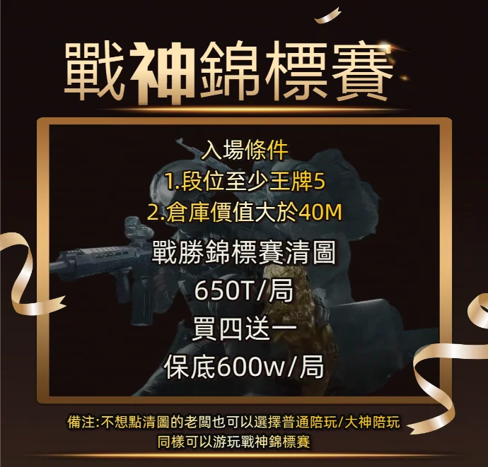 第一局打手給老闆起六套全裝,老闆進圖每殺一位特遣加 100萬保底(落地成盒安慰獎 300萬加保底)(放下屠刀立地成佛獎 500萬加保底 人機特遣0殺安全撤離)