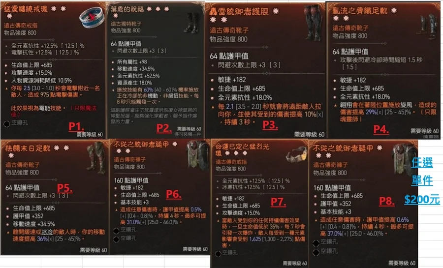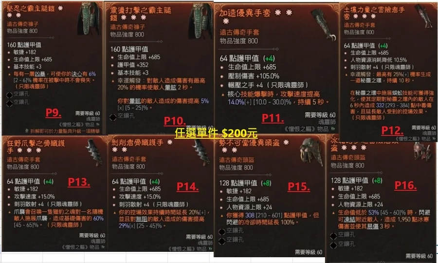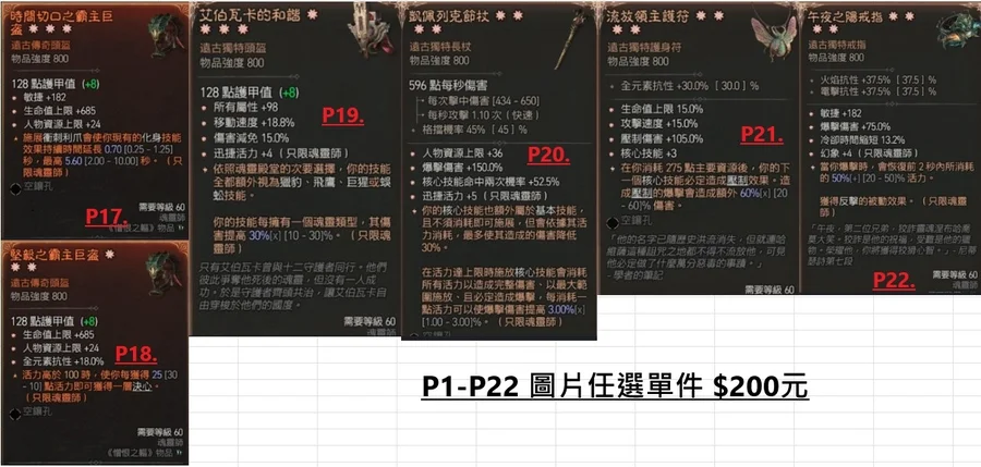 (包泰瑞爾之力/軍帽/祖父/末日/星夜/靈巫職業暗金等)