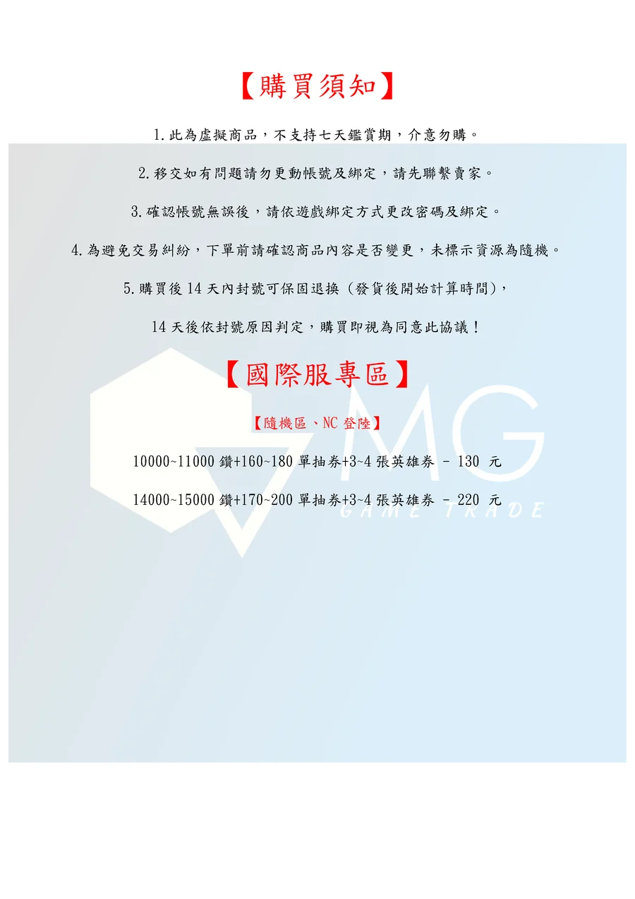 14天後依封號原因判定,購買即視為同意此協議!