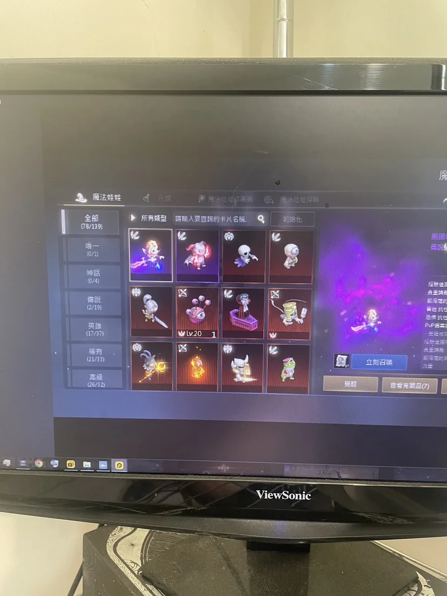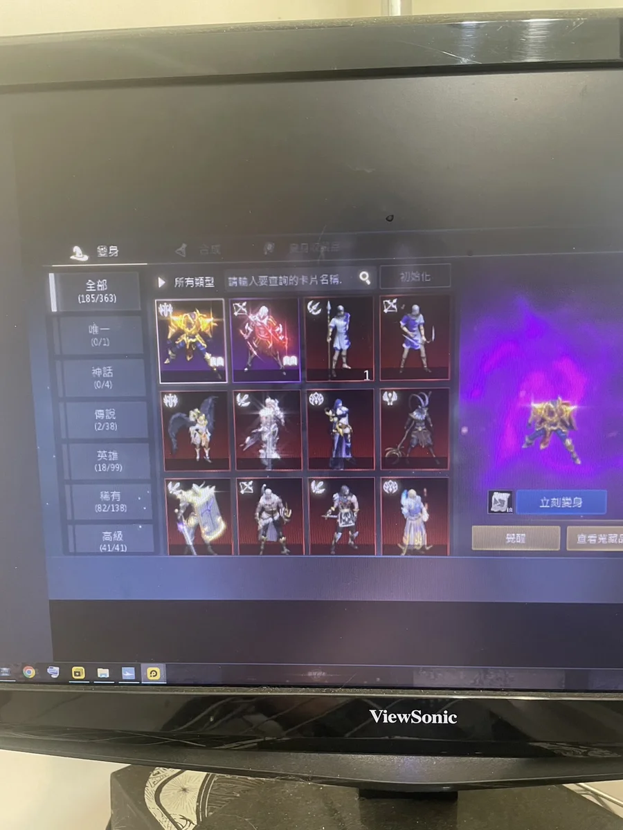2紫變(屠龍、暗黑私立安)、2隻紫娃(惡魔、黑暗哈汀、墮落)、1紫聖物(炎魔的劍)