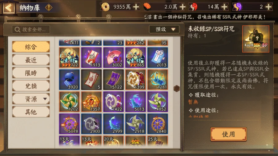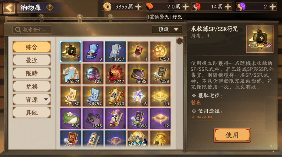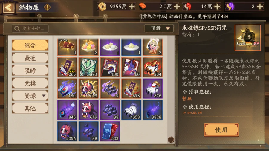未收錄式神兌換券1張 (ssr/sp可兌換)