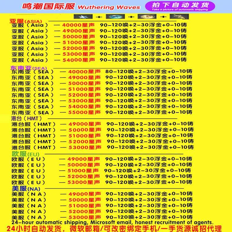 亚服(Asia)63000星声+100-110唤+2浮金+0-10铸