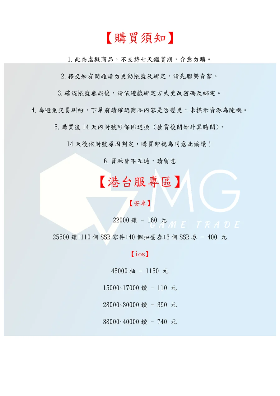 14天後依封號原因判定,購買即視為同意此協議!