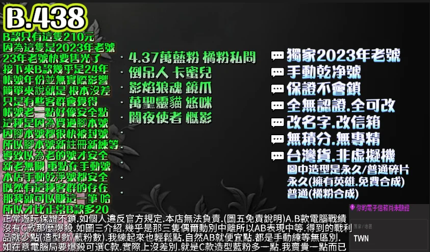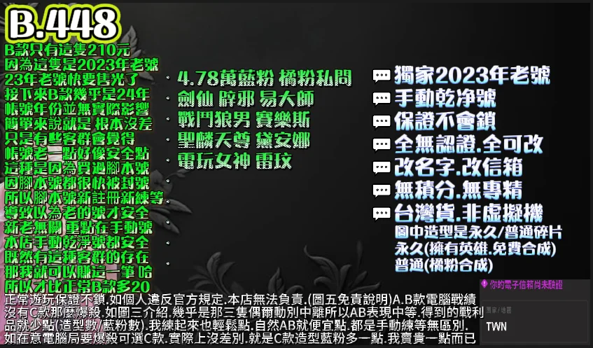 👉買帳號最講究安全,店家介紹的越仔細 顧客越放心👈