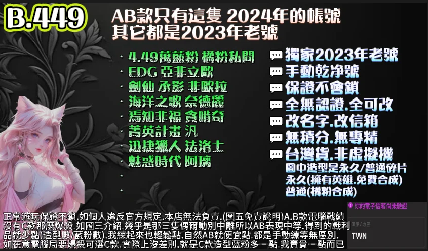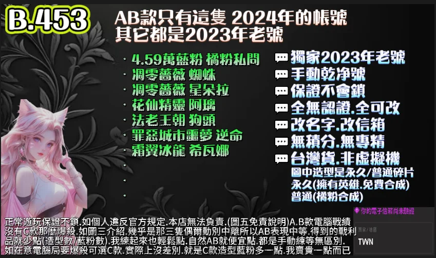 30等.4萬粉.4~7造型.3~6英雄.可挑造型.此賣場有圖可看 |