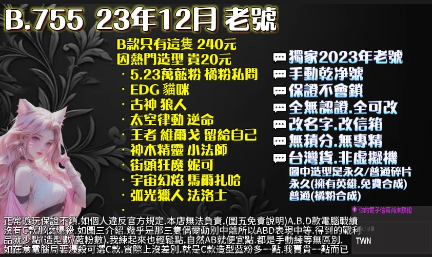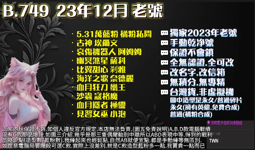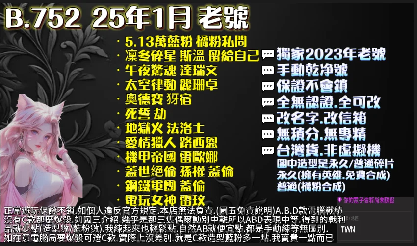 🔹台灣貨 自產自銷:註冊時填寫的生日 信箱 每隻都不同,不怕盜號找回(如一樣會被盜號 詳情問我)