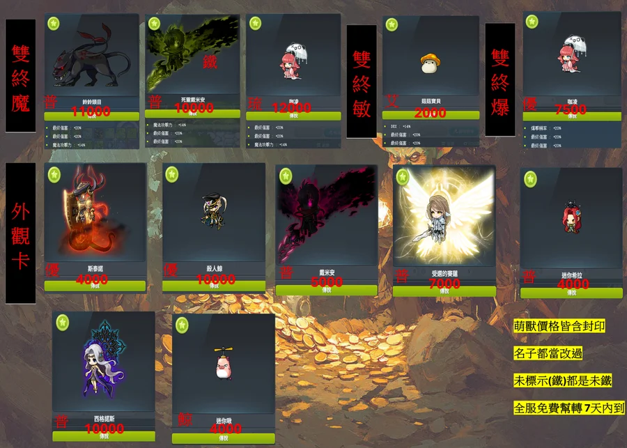 轉服需先支付物品價格10%(實收)當作定金,5天內到達