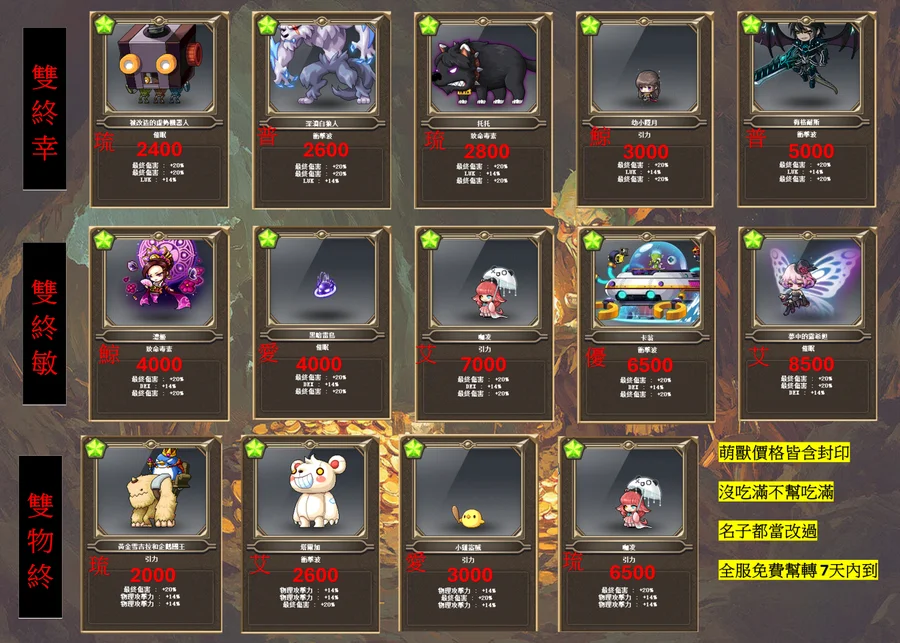 轉服需先支付物品價格10%(實收)當作定金,5天內到達