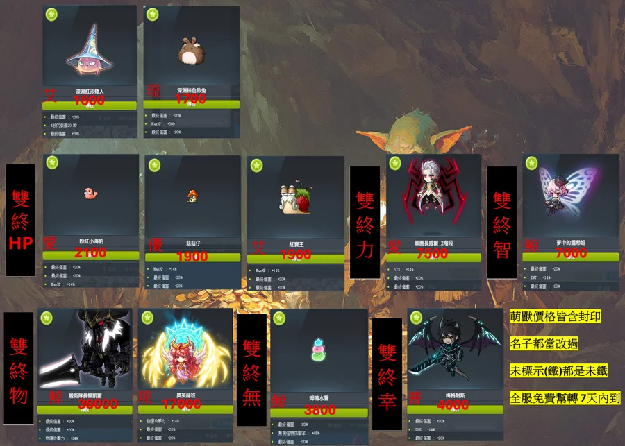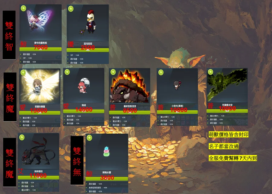 轉服需先支付物品價格10%(實收)當作定金,5天內到達