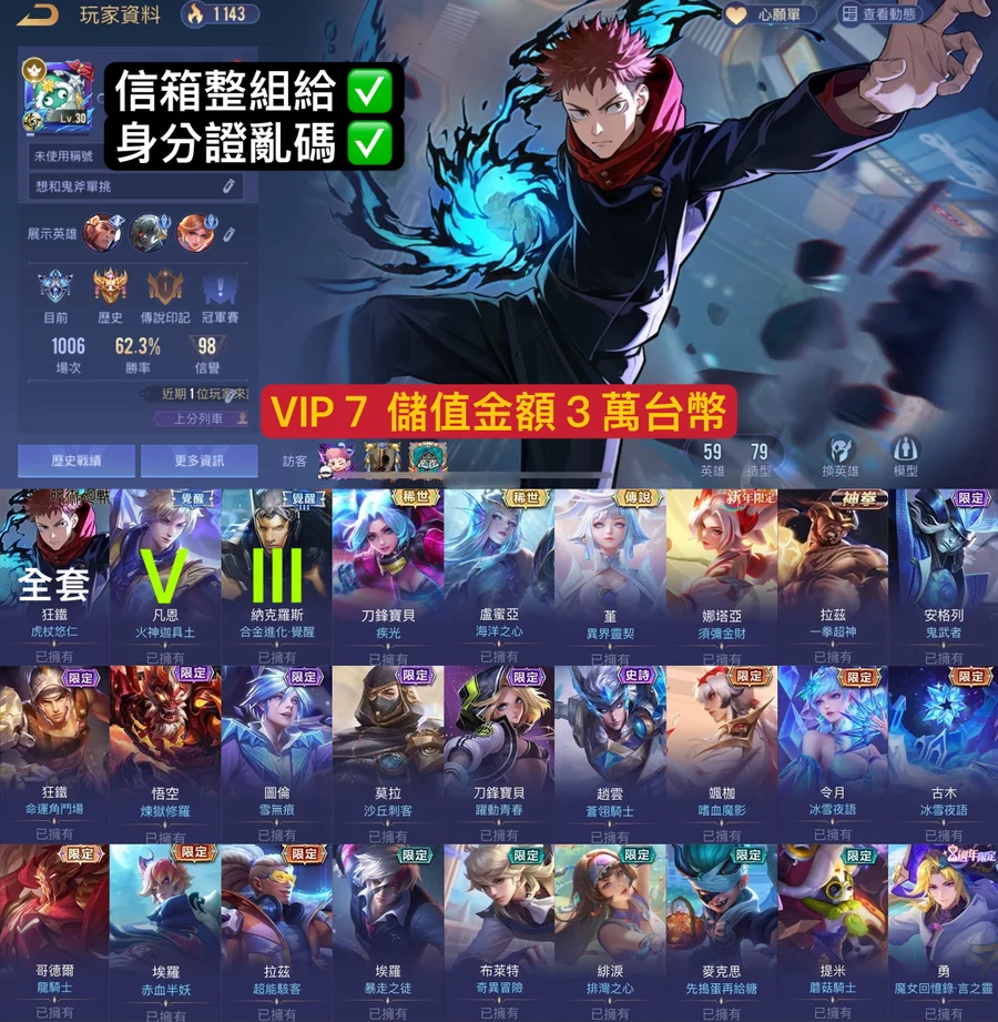 🇹🇼 R G銷售 🇹🇼帳號狀態:圖上伺服器:聖騎之王金幣:2244寶石:10572點券:10奧義碎片:13萬 🔥五 路 奧 義 齊 全 ✨底價『 6000 』往上開能秒收可談,請勿直接下單✅ 安全保證 / 價格公道✅ 不定期更新 帳號🈲️ 商人🈲️ 鳥價⚠️ 擾亂者黑名單有興趣的朋友歡迎私訊詳談價錢皆有待協商,可議價⭕️以上照片僅供參考,近詳情請私訊洽談。本賣場一律洽談後開專屬交易🤝